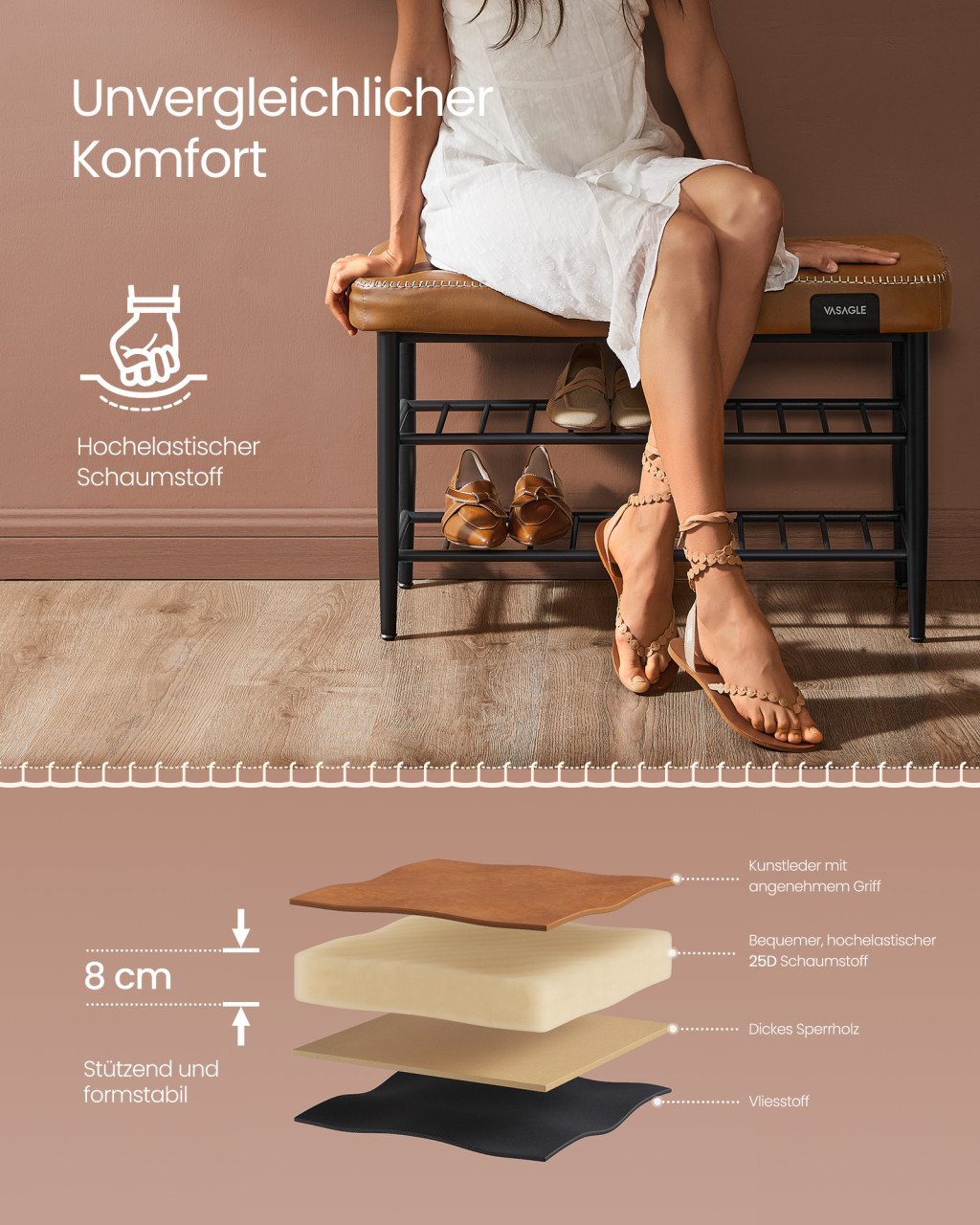 VASAGLE EKHO LSB054K01 Cipőpad varrással 30 x 80 x 50 cm Modern 135 kg teherbírás 135 kg műbőr