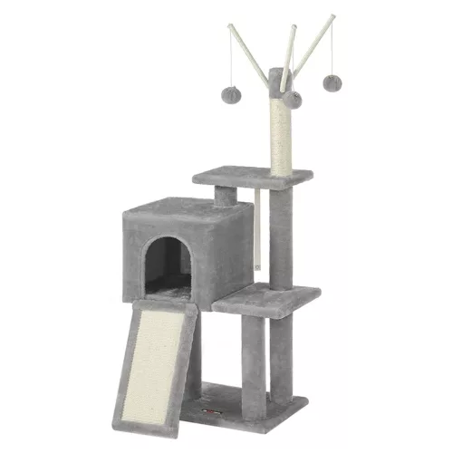Macska kaparófa, cicaházzal, világosszürke, 42 x 32 x 118 cm