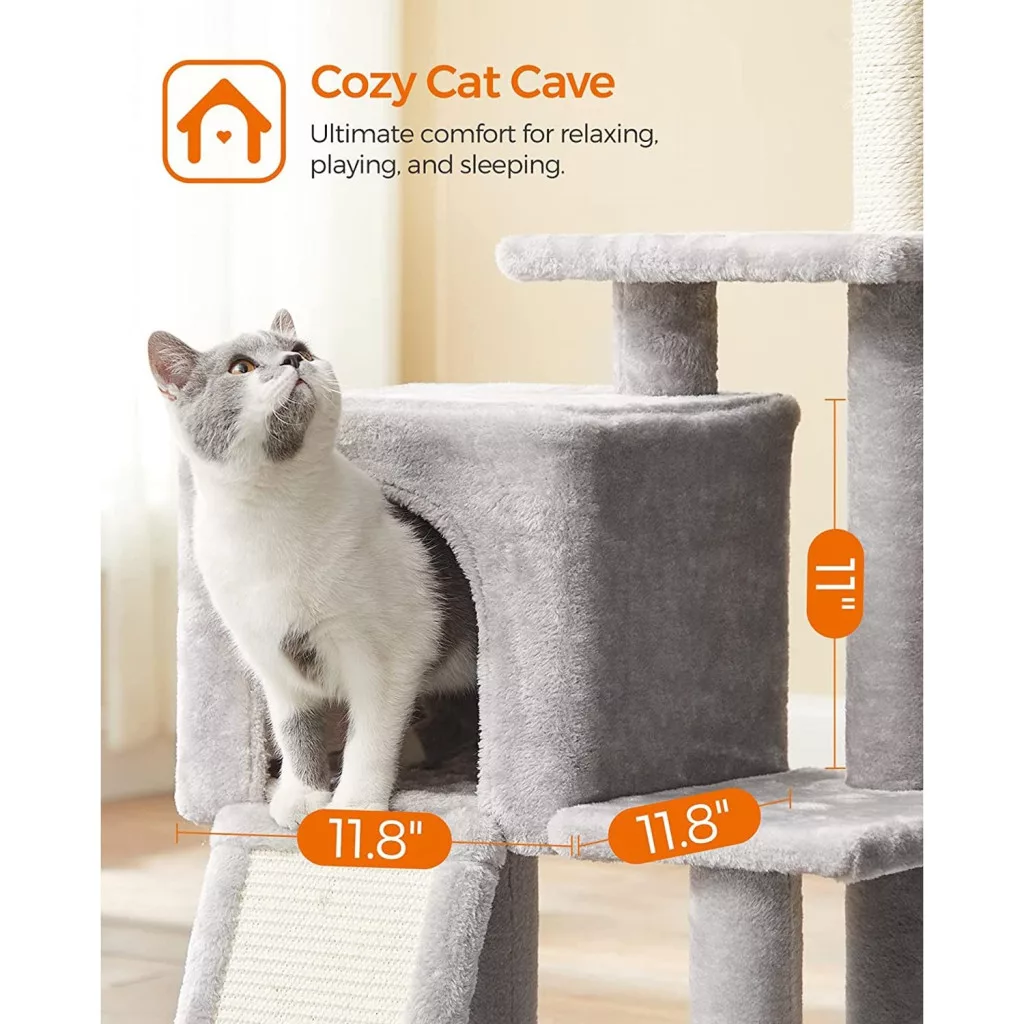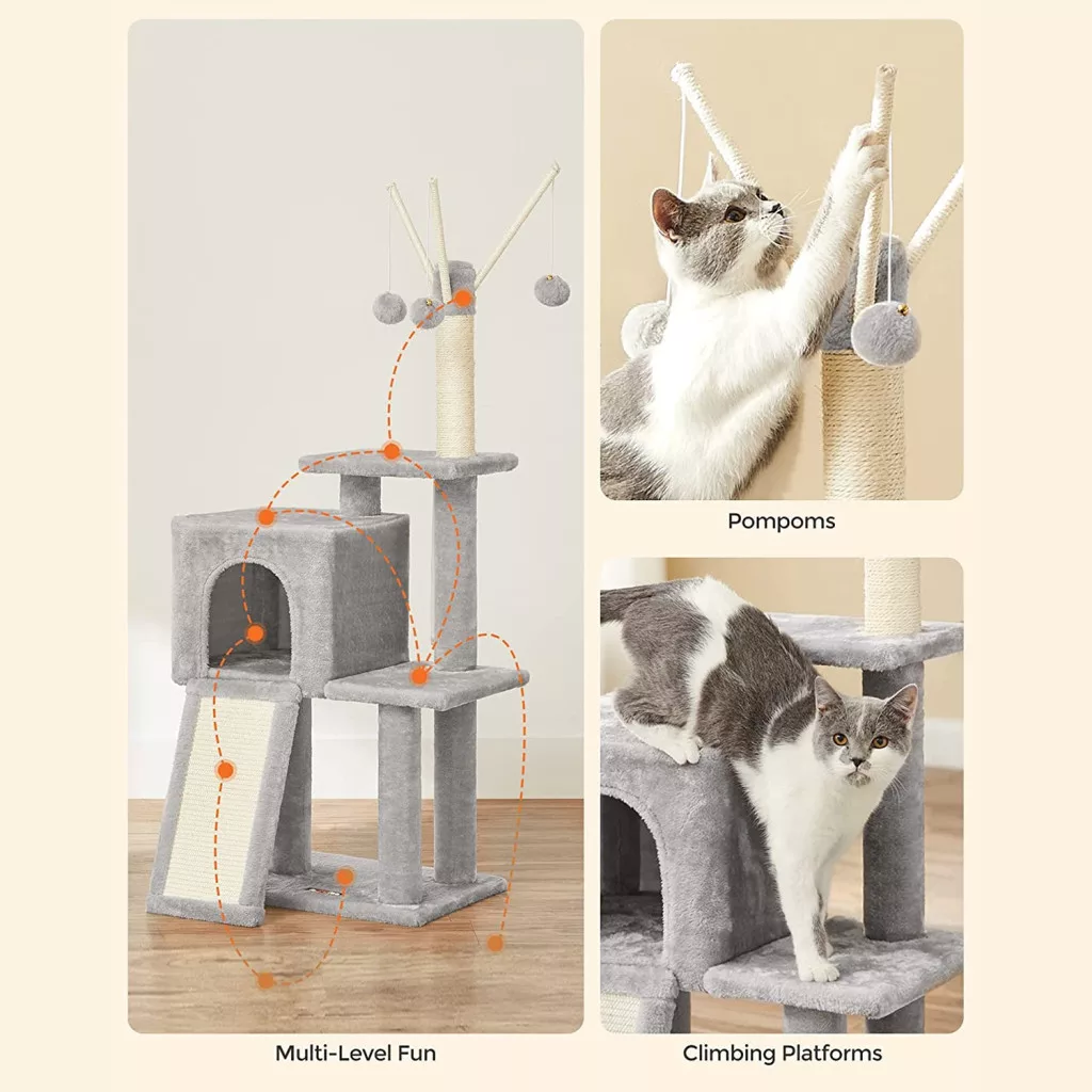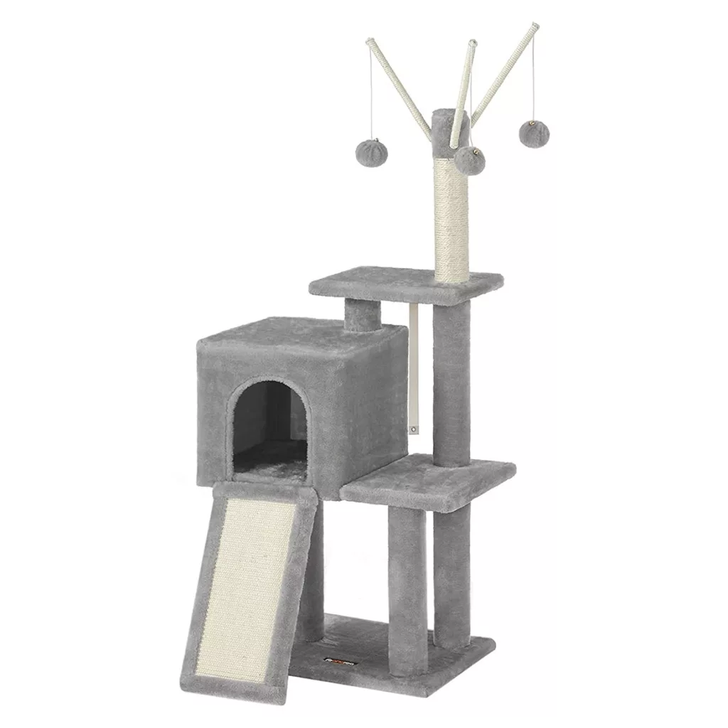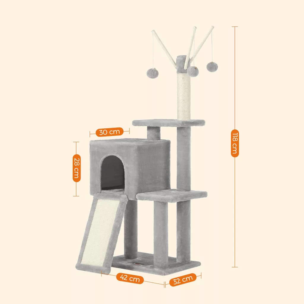 FEANDREA Macska kaparófa, cicaházzal, világosszürke, 42 x 32 x 118 cm
