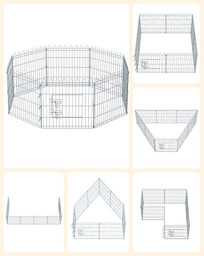 DIY tervezés, különböző formák: ez a játszótér 8 kerítéspanelekből áll, amelyeket szükség szerint négyzet vagy nyolcszög alakúra lehet összeszerelni. A 61 cm-es magasság 40 cm-ig terjedő állatok számára alkalmas, pl. kutyák, nyulak és csirkék számára