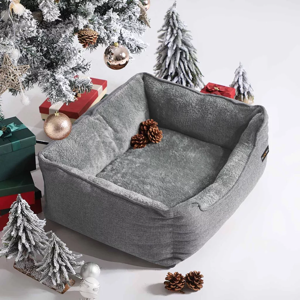 FEANDREA Kutyafekhely, Vászonhatású Kisállat Fekhely, Kutyakanapé Emelt Szélekkel,