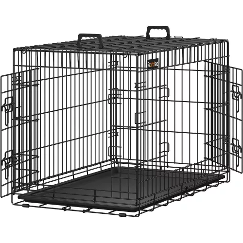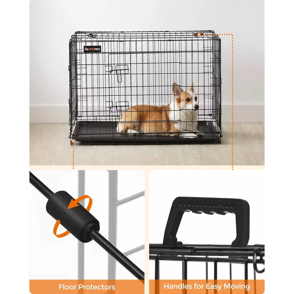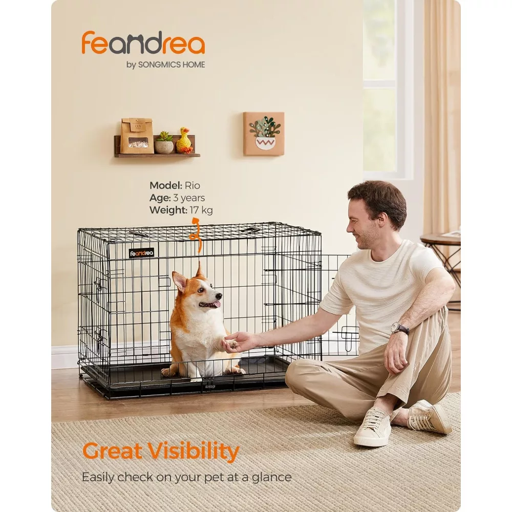 FEANDREA Kutyabox, összecsukható, 92,5 cm hosszú, 2 ajtóval, L méret, fekete PPD36H
