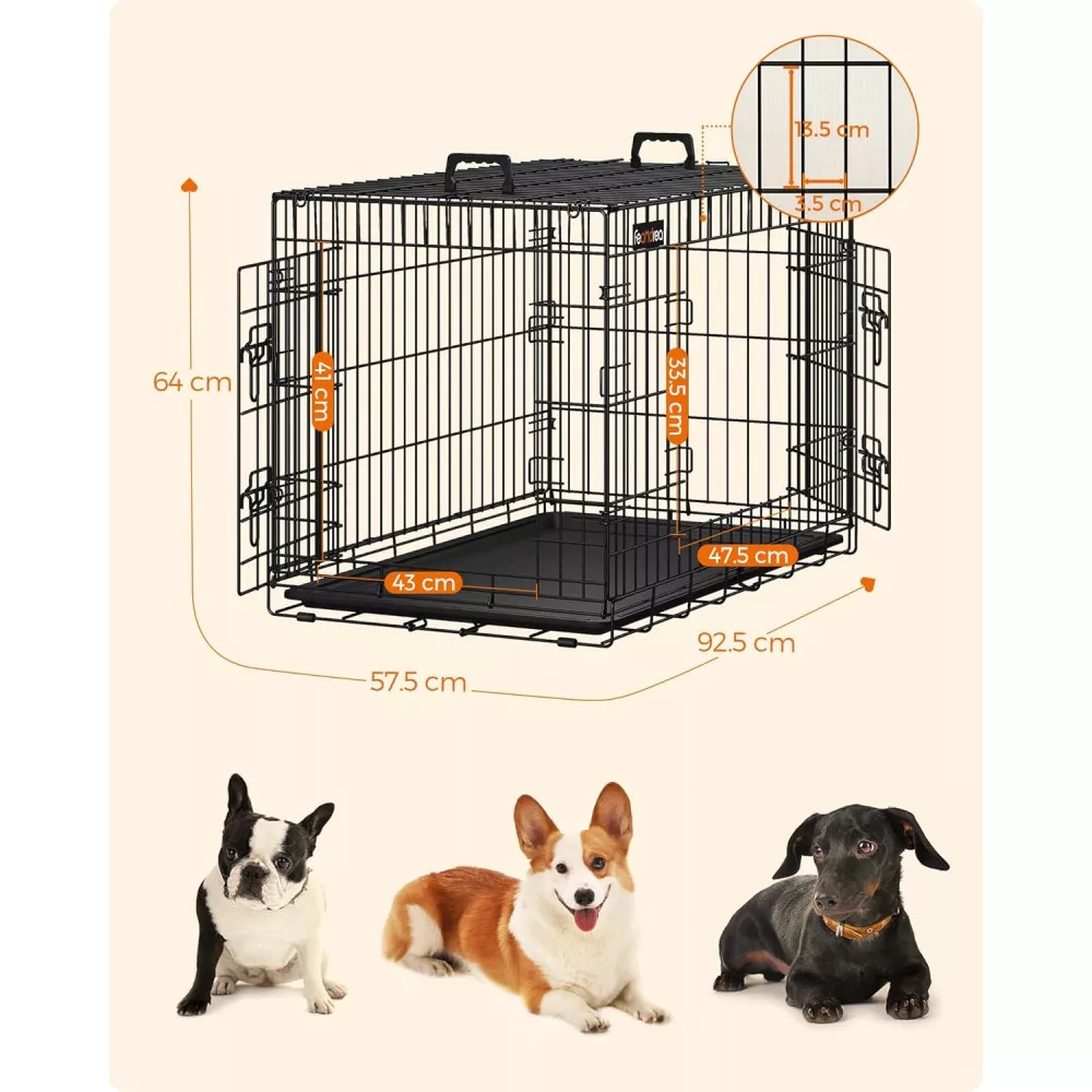 FEANDREA Kutyaketrec, kutyabox két ajtóval L, fekete 92x57x64cm