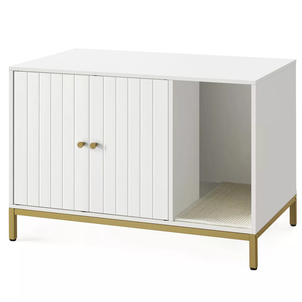 Díszítse otthonát: Fehér felületével és aranyszínű fémvázzal ez a modern alomtálca burkolat könnyedén illeszkedik a legtöbb lakberendezési stílushoz, így a korábban kellemetlen alomtálca területet esztétikus hellyé varázsolja
