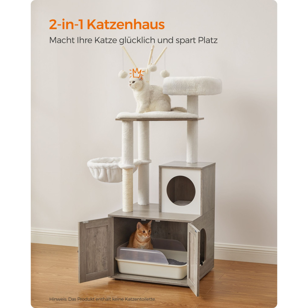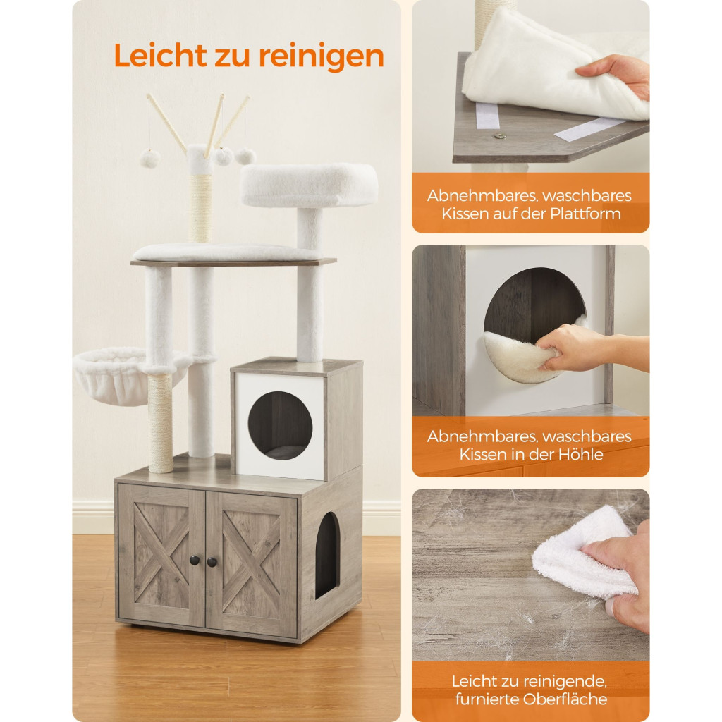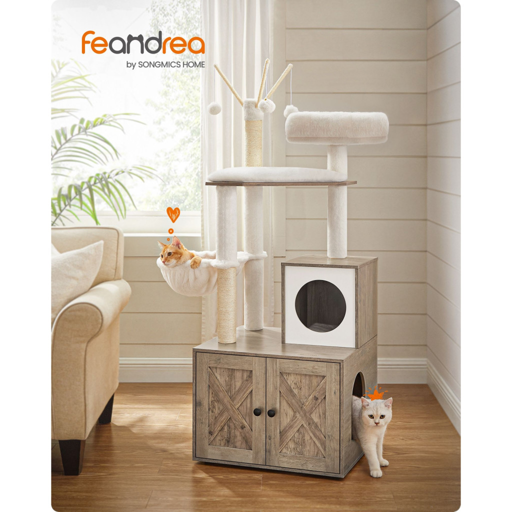 Feandrea Greige PCT113G01 Macskakaparó oszlop macskaalom tálca szekrénnyel, 2 az 1-ben