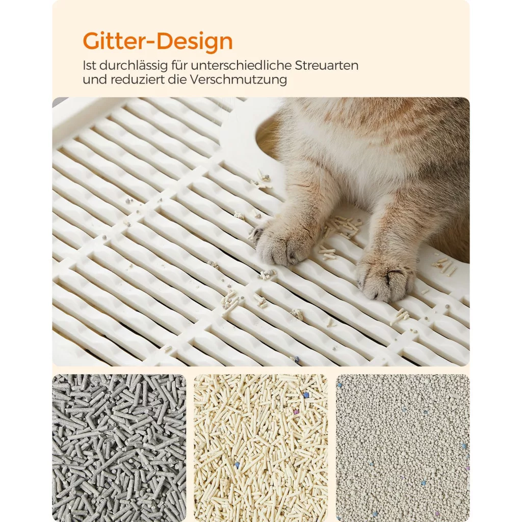 Kevesebb nyom: Ez az alomdoboz hálós tetővel rendelkezik, ha a macskája ráugrik, a szemcsék visszaesnek a dobozba, ez a kialakítás csökkenti az alom nyomait a ház körül és tisztán tartja otthonát.