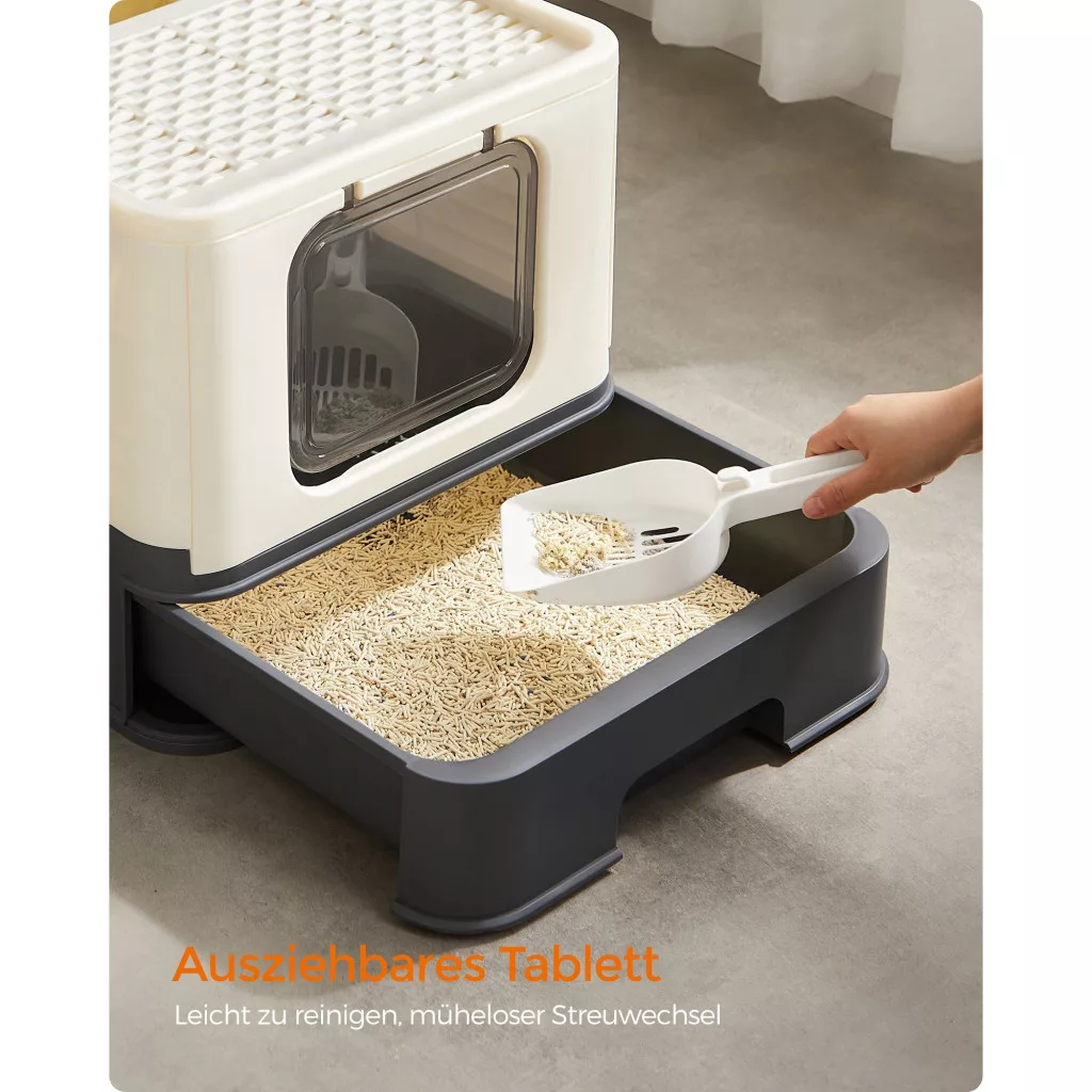 Könnyen nyitható, könnyen tisztítható: A kihúzható tálcával rendelkező macskaalomdoboz kényelmes, egy lapát és egy kefe is tartozik hozzá, hogy könnyedén összegyűjthesse a székletet és megtisztíthassa az almot a tetején vagy a sarkokban.