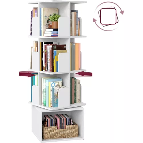 forgatható könyvespolc, tárolópolc, 4 szintes, felhő fehér
