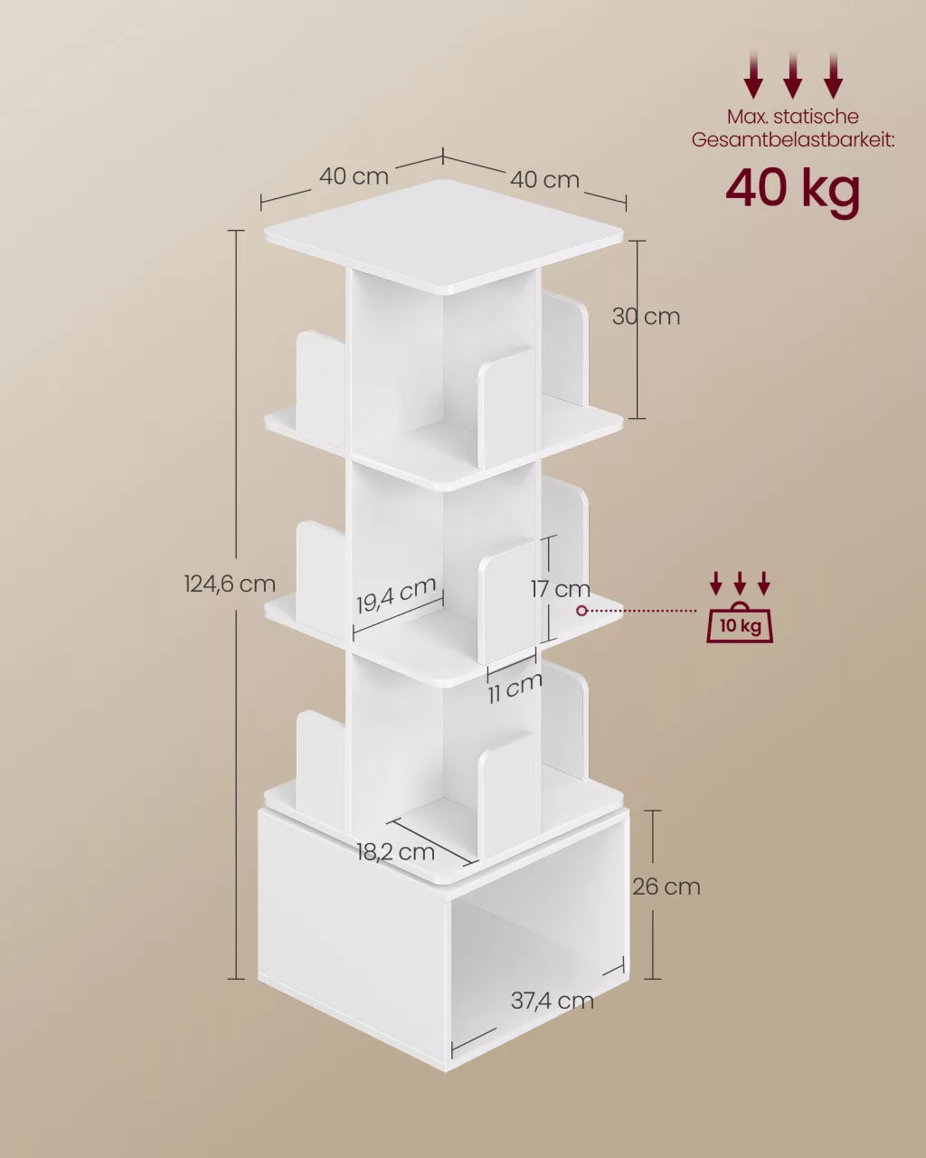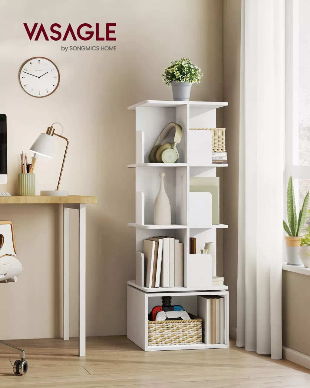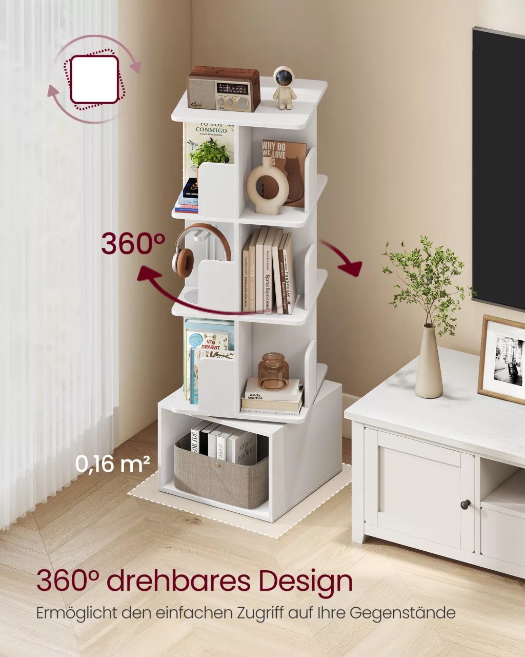 Fedezze fel a modern tárolás új dimenzióját ezzel a forgatható könyvespolccal, amely nemcsak praktikus, hanem stílusos megoldás is otthonában. A felhő fehér szín eleganciát sugall, míg a minimalista dizájn tökéletesen illeszkedik bármilyen enteriőrbe. Az alábbi előnyöket élvezheti, ha ezt a könyvespolcot választja: