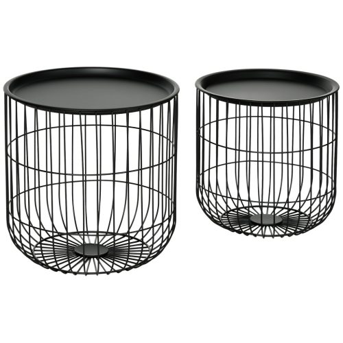 Kombinálja a divatos skandináv dizájnt a tárolóhellyel a nappalijában vagy irodájában ezzel a HOMCOM dohányzóasztal szettel! A szett egy kisebb és egy nagyobb asztalból áll, amelyek helytakarékosan egymásba rakhatók. A két egymásba rakható asztal fémkosarakból áll, fekete asztallappal, amelyek extra tárolóhelyet biztosítanak könyvek, takarók, párnák és játékok számára, miközben kávéja számára is felületet kínálnak. Vigye haza a multifunkcionális 2 darabos szettet, és azonnal emelje otthona színvonalát.