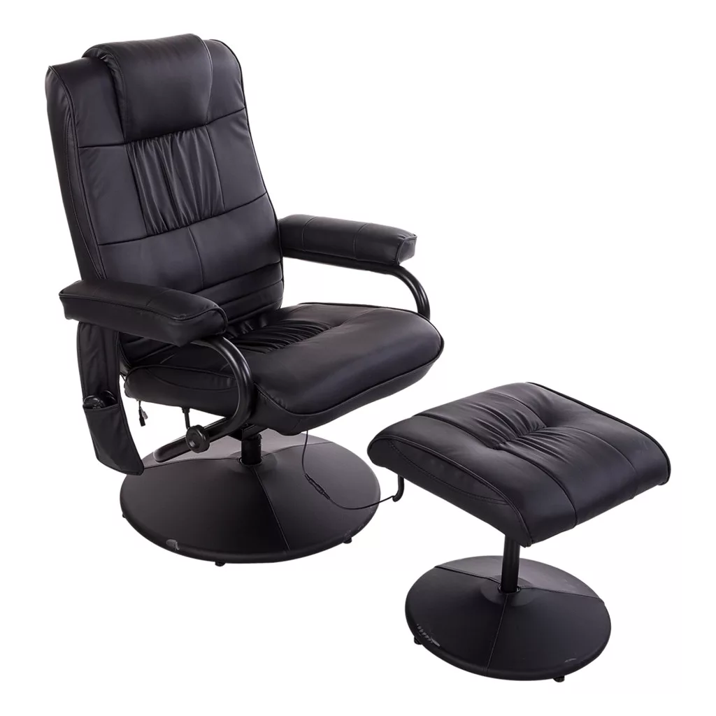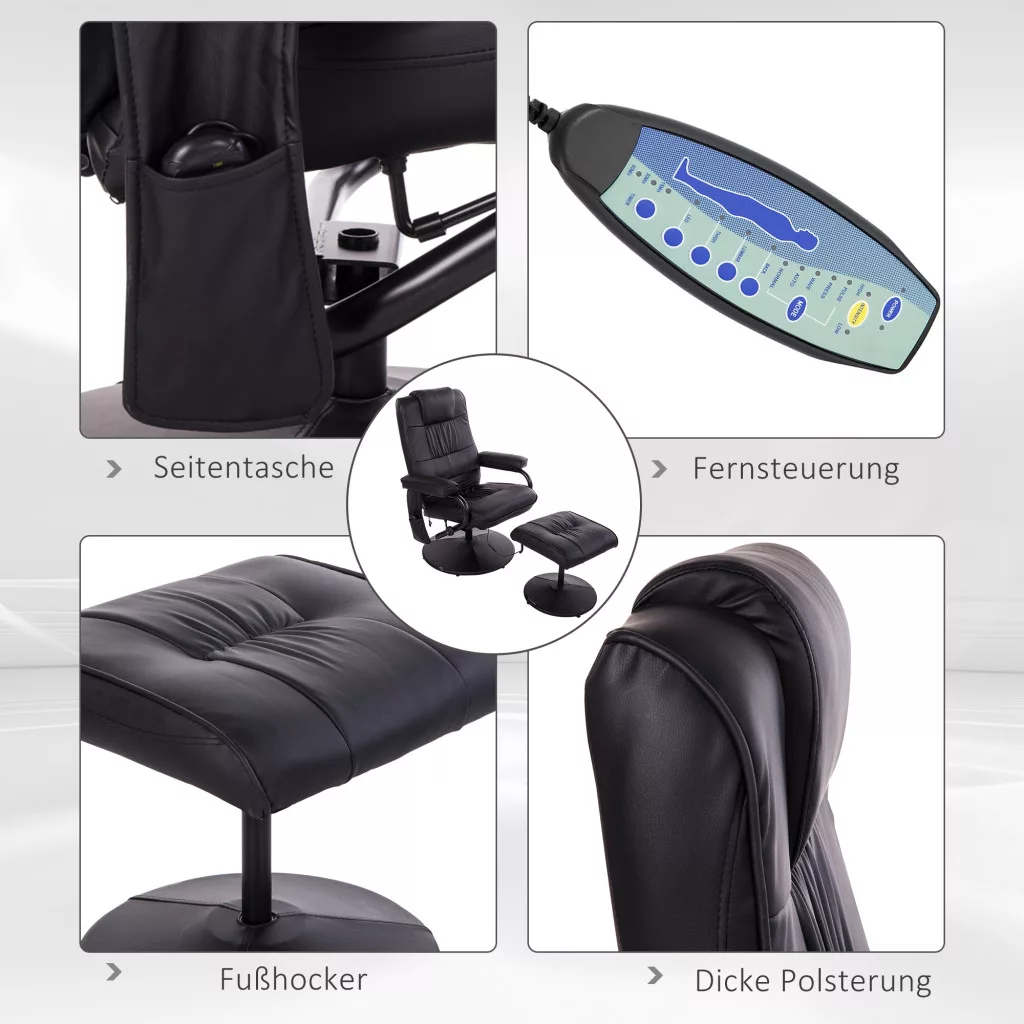 HOMCOM Masszázsfotel zsámollyal, relaxációs fotel masszázsfunkcióval, dönthető, fekete műbőr