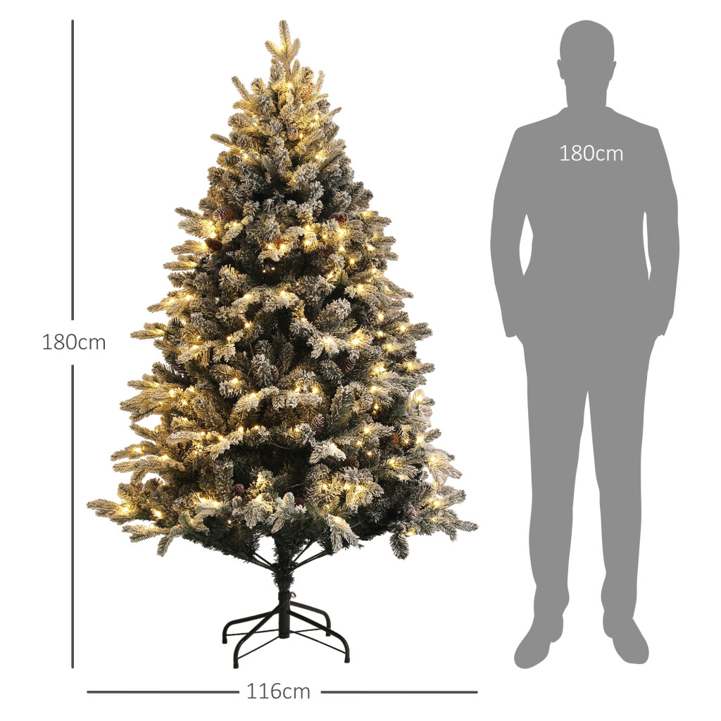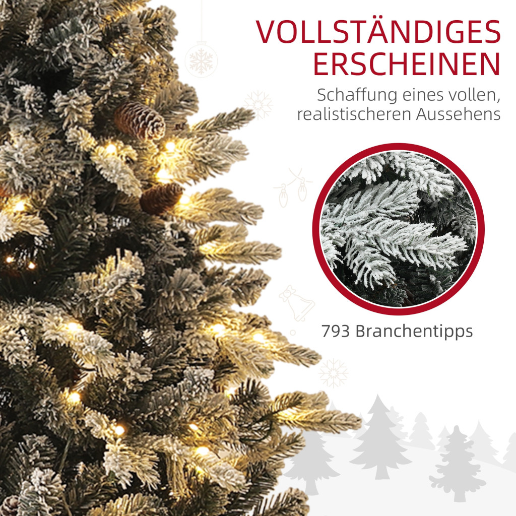 HOMCOM Műfenyő 180 cm magas, 793 ággal és műhóval, összecsukható acélállvánnyal