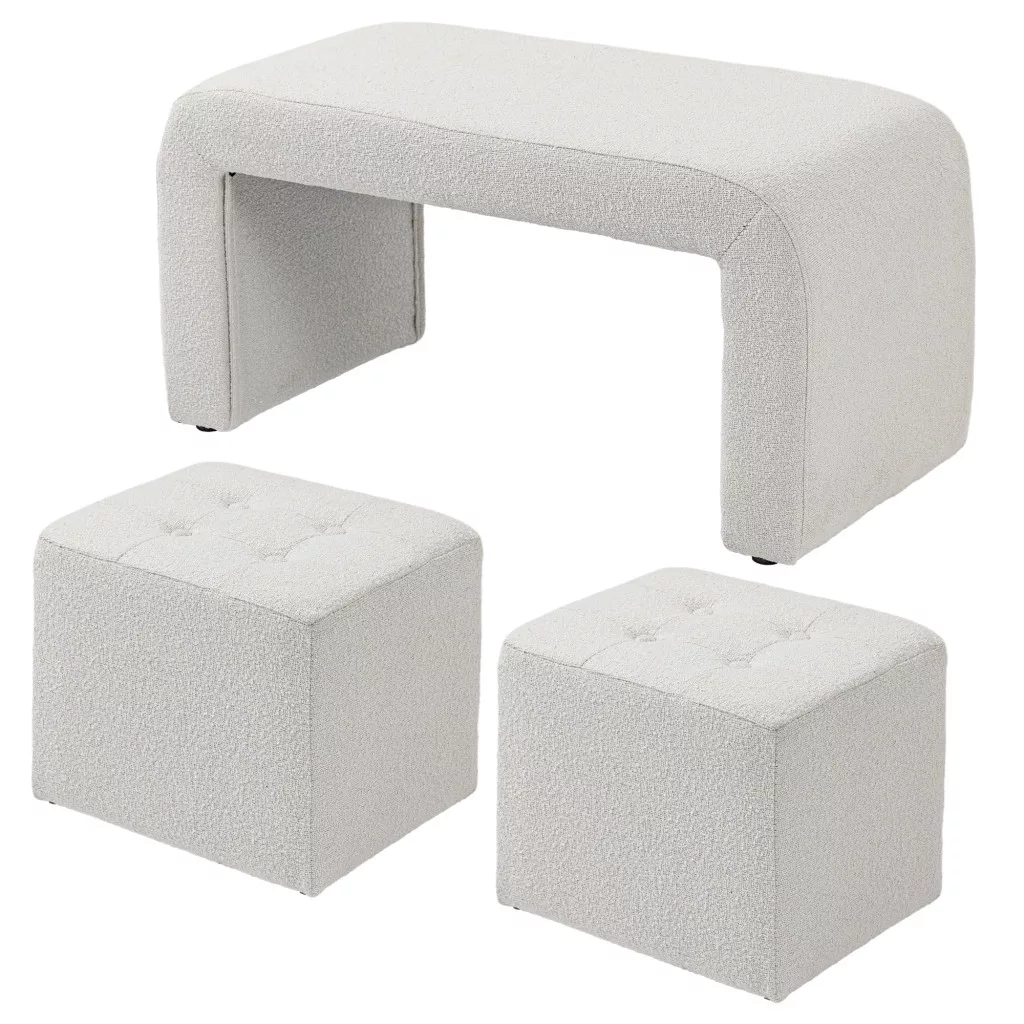 • Modern stílus: A teljesen fehér szín könnyedén illeszkedik bármilyen dekorációs stílushoz, és a kis puffokon található gombos tűzés stílusos megjelenést kölcsönöz, javítva az esztétikai összhatást, ami nagyszerű kiegészítővé teszi bármely lakótér számára.