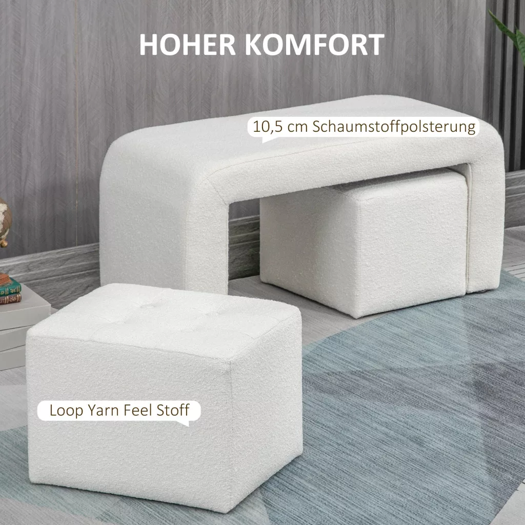 HOMCOM 3 darabos lábtartó szett, ülőke oszmán 3 puffal, párnázott ülőke nappaliba és