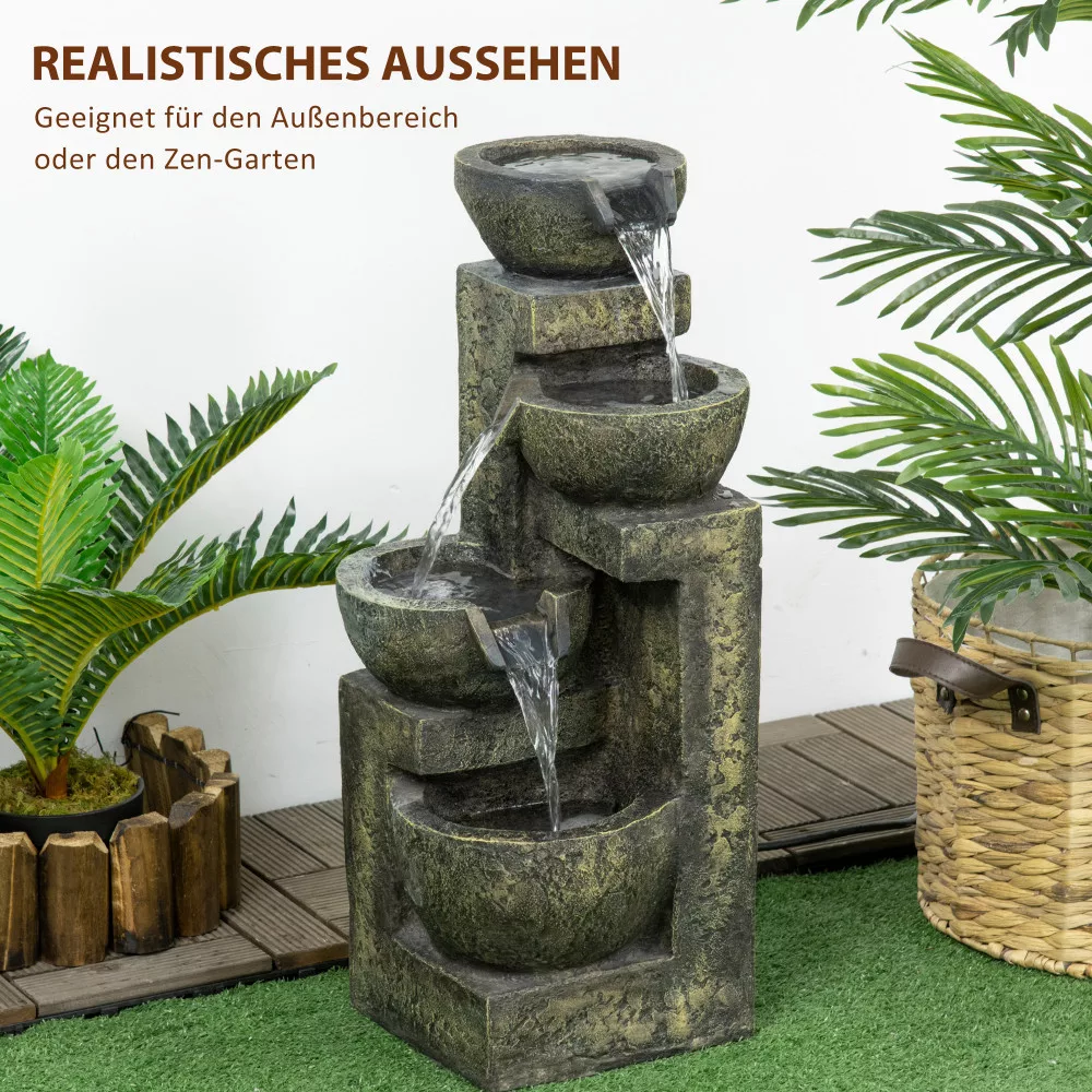• Négylépcsős szökőkút: A gyengéd fröccsenés és a gyönyörű vintage dizájn pihentető hellyé varázsolja kertjét.