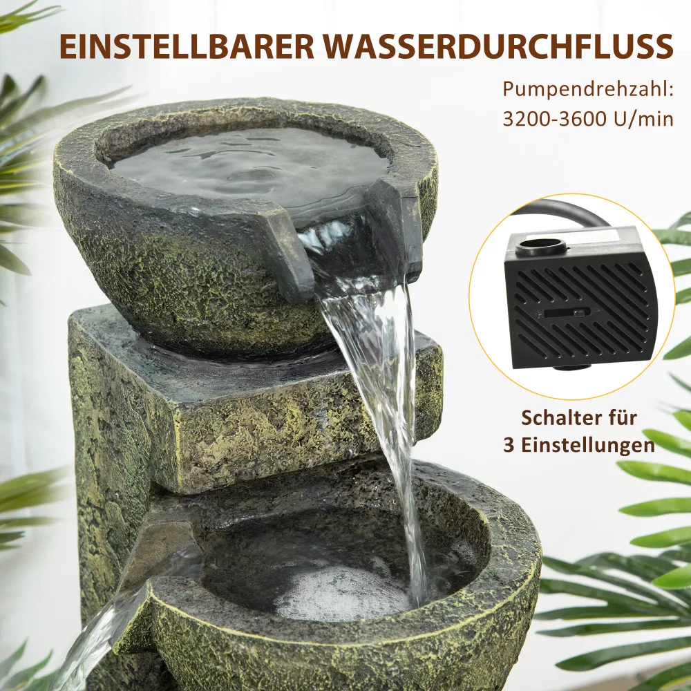 Kerti szökőkút, 3 fokozatú kerti vízesés, 25 cm x 24 cm x 60 cm