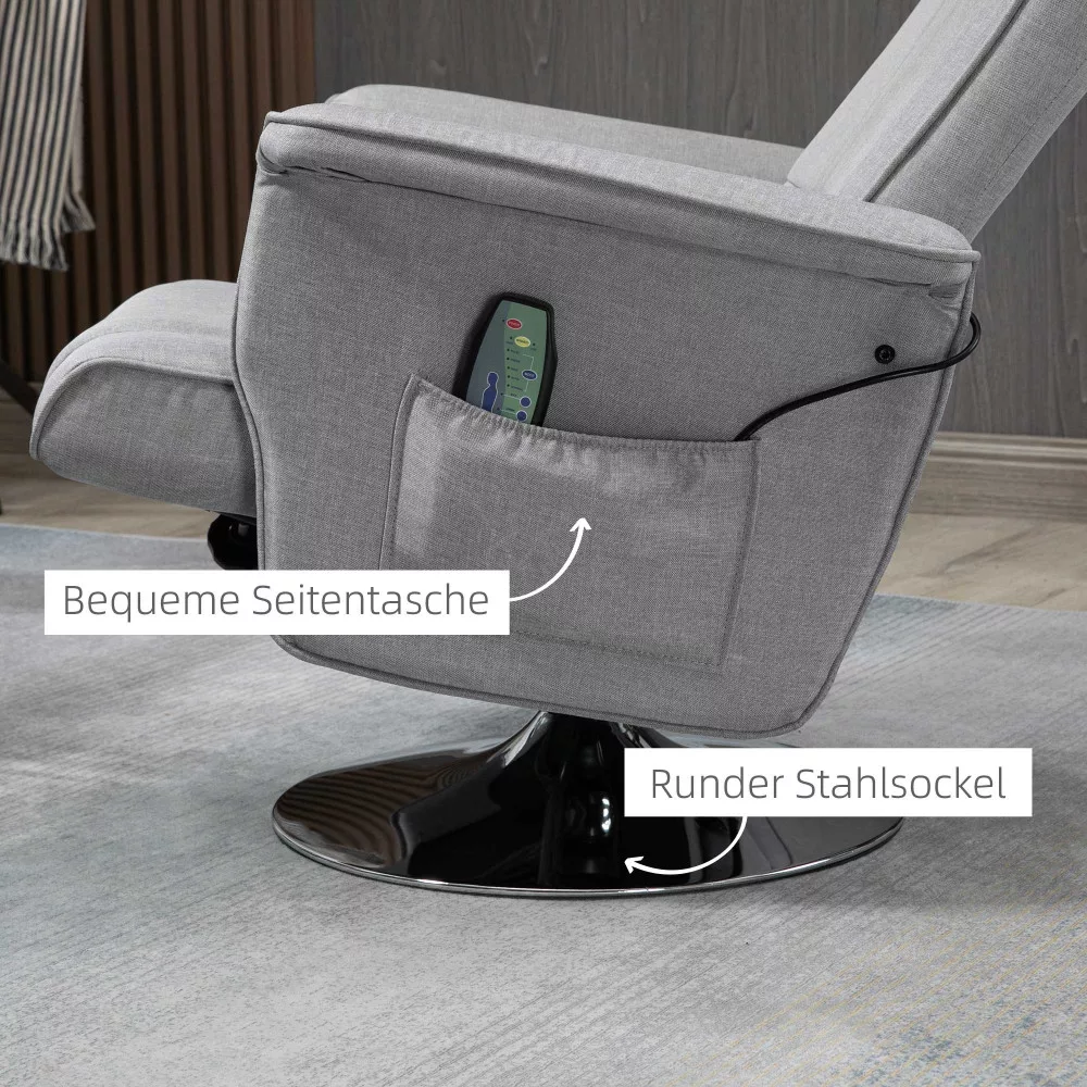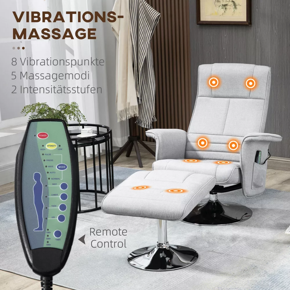 Masszázsfotel lábtámasszal, 8 pontos elektromos masszázsfunkcióval, dönthető, szürke