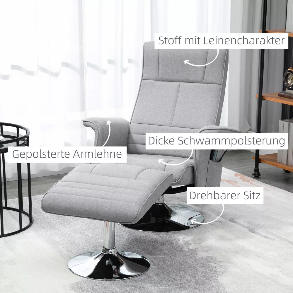 • Vászon megjelenés: Ez a TV-szék modern dizájnnal és elegáns vászon megjelenésű felső anyaggal készül. A fotel a legjobb kényelmet nyújtja a meghitt kikapcsolódáshoz – akár olvas, tévézik, akár pihen.