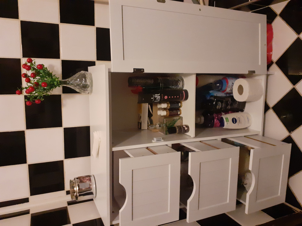 Szabadon álló ajtós, 3 fiókos szekrény, fehér 60x30x81cm