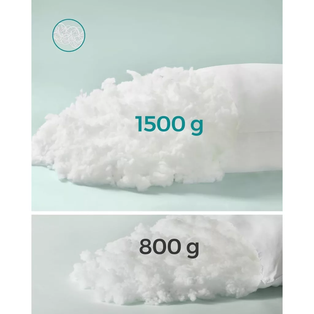 Nagylelkű töltet: 65% bolyhos 3D poliészter szál és 35% kemény 7D poliészter szál, egy arány, amelyet többszöri tesztelés után választottak ki. Minden párna töltete: 1500 g. Minden reggel tele energiával ébredsz majd