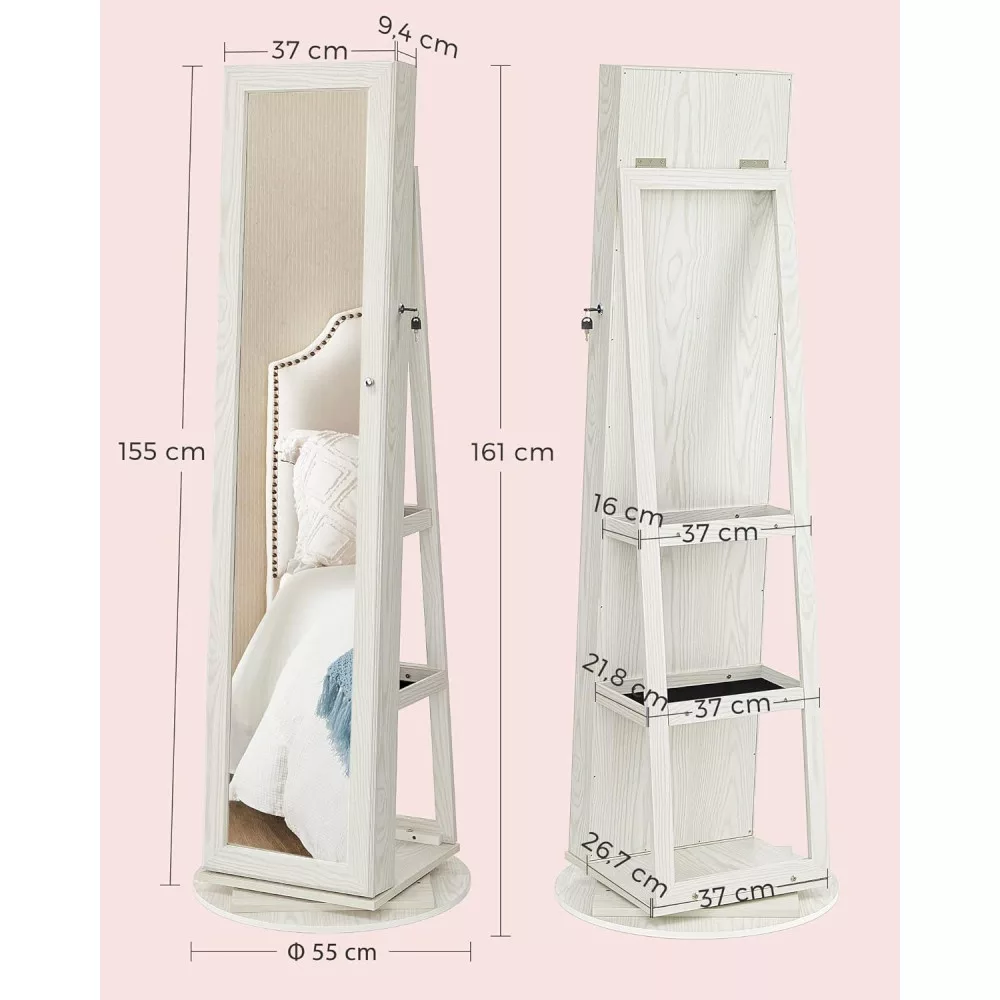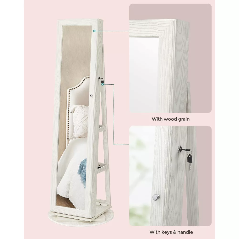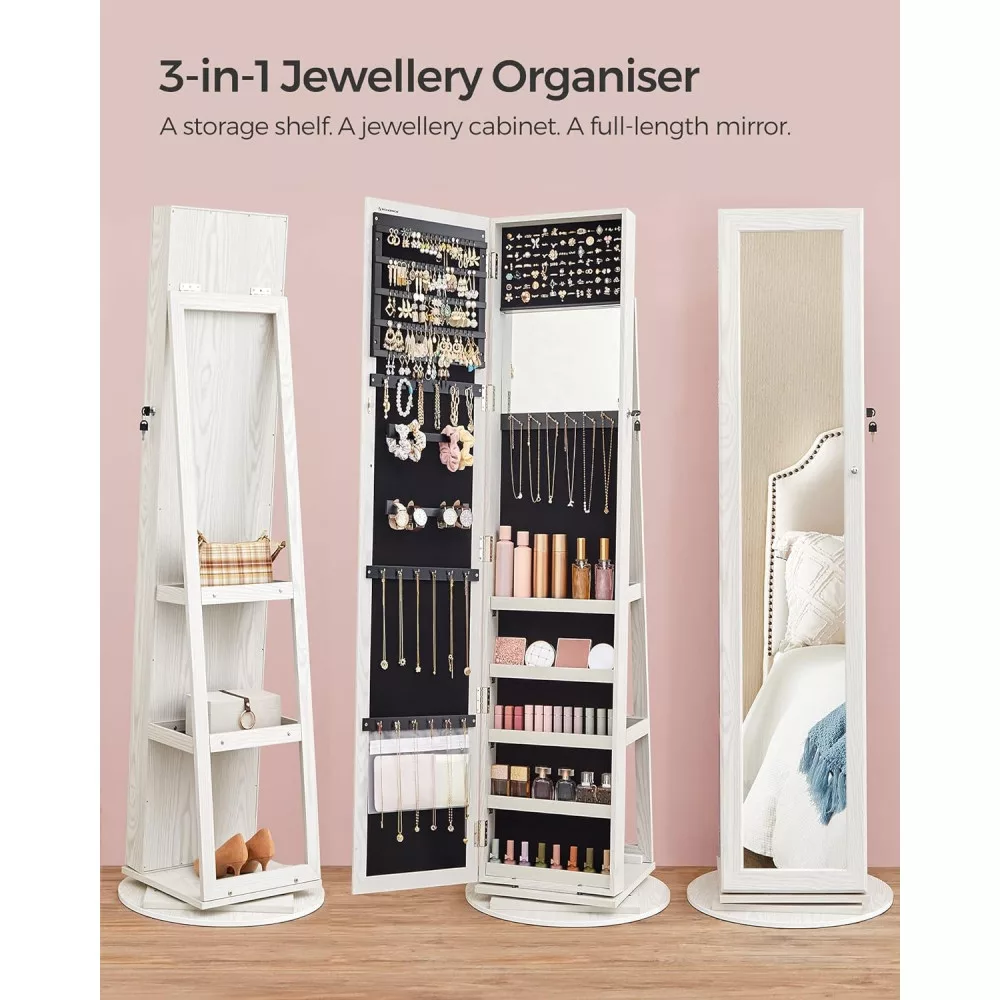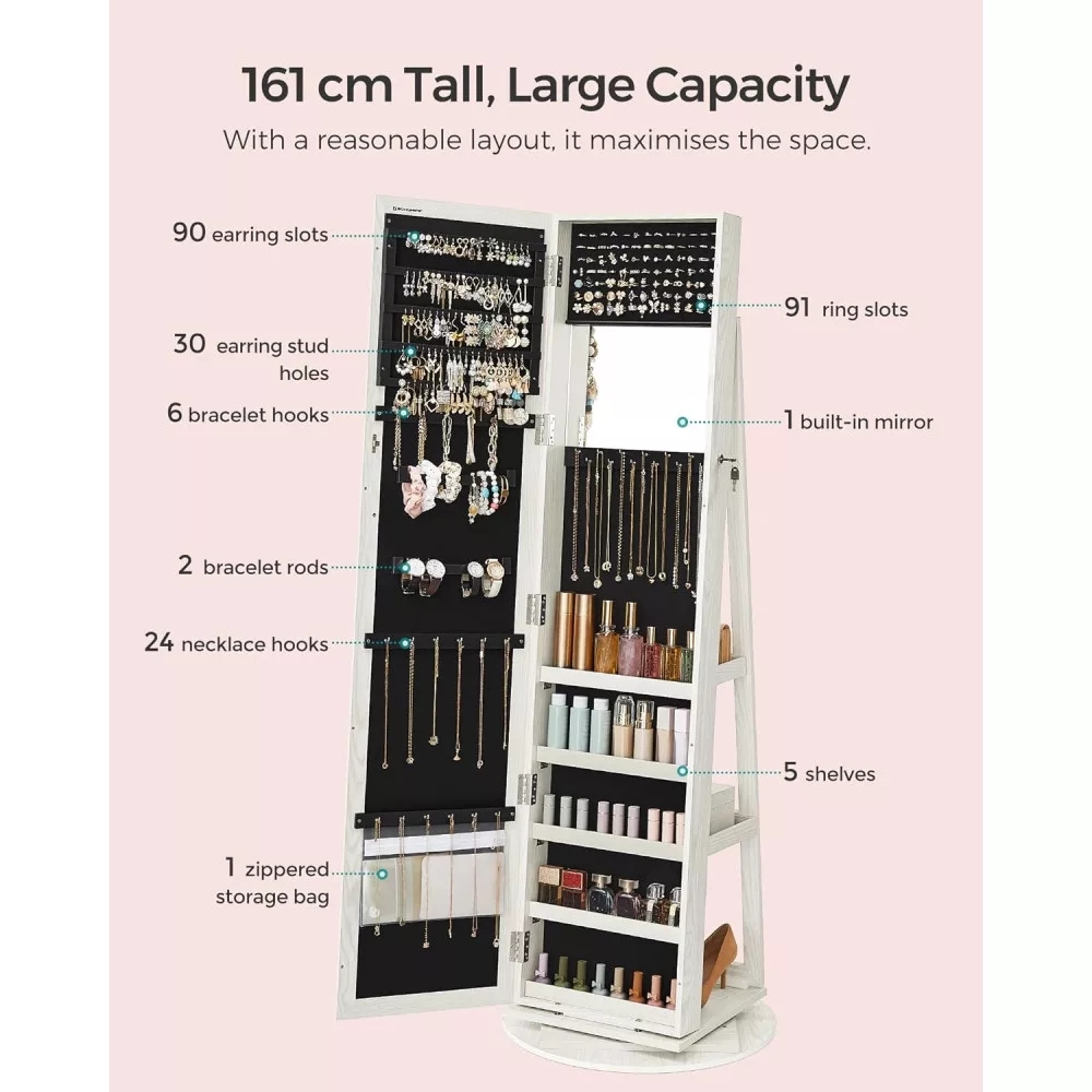SONGMICS Szabadon álló ékszeres szekrény, 360°-ban forgatható ékszer tároló tükörrel,