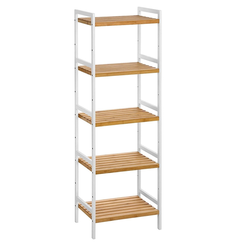 Bambusz polc fürdőszobába, konyhába, 5 szintes, bambusz és fehér 45x31x142cm