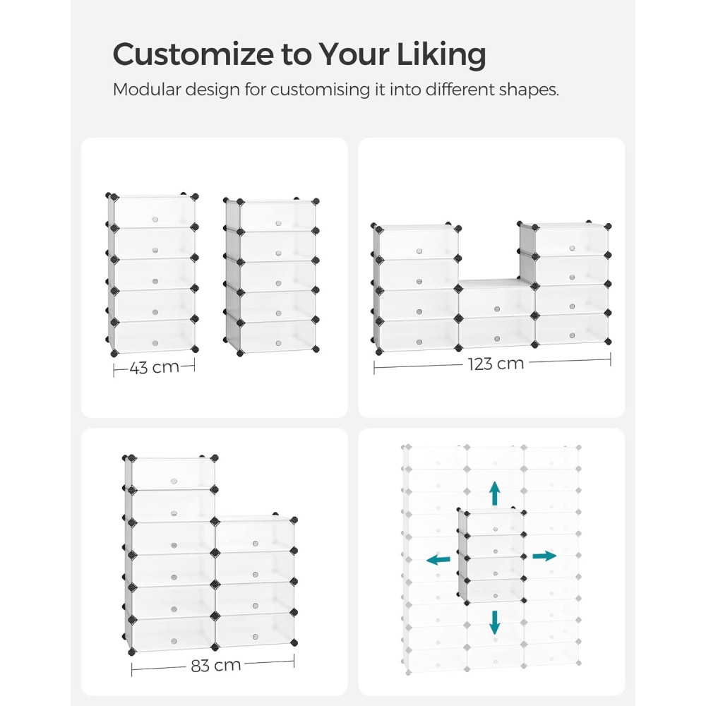 Káosz, Tűnj el: Úgy tervezték, hogy kihasználja a padlóteret, ez a cipőtartó egymásra rakható és testreszabható a helyed és preferenciáid szerint, maximalizálva minden centimétert a folyosón, nappaliban, lépcső alatt, gardróbban, ajtó mögött, padláson és irodában.