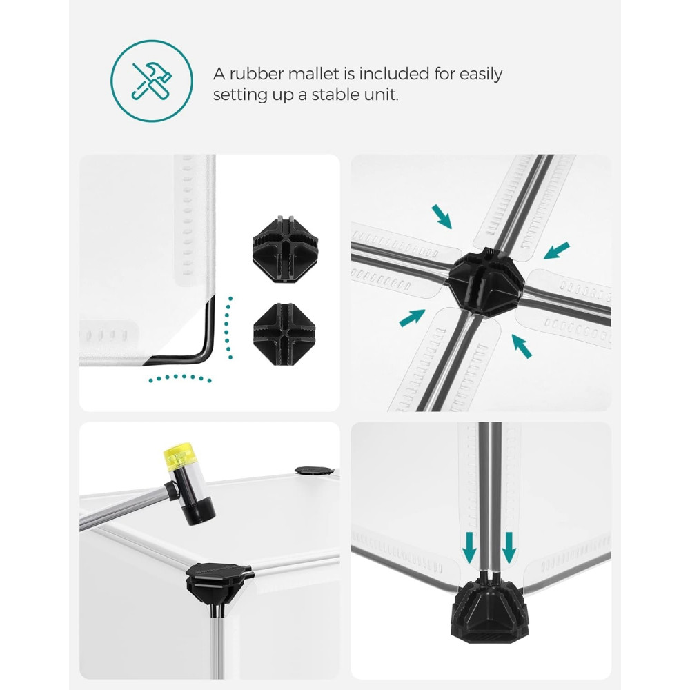 Könnyebb, mint gondolnád: A mellékelt kalapáccsal és illusztrált útmutatóval az összeszerelés örömteli - szinte olyan, mint építőkockákkal játszani. Ez a könnyen szétszerelhető egység megkönnyíti az áthelyezést.