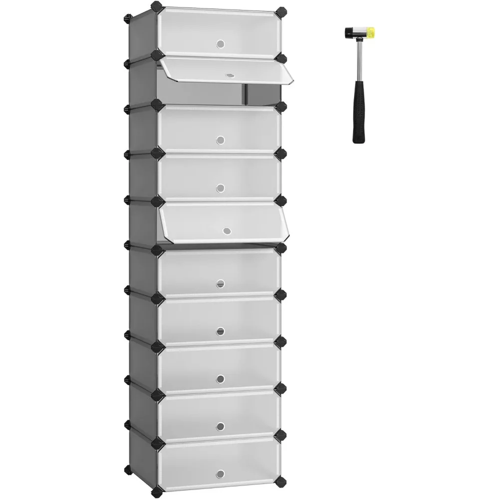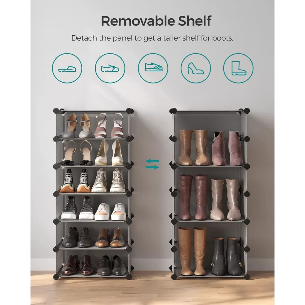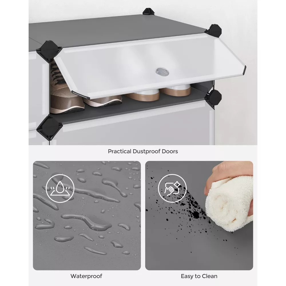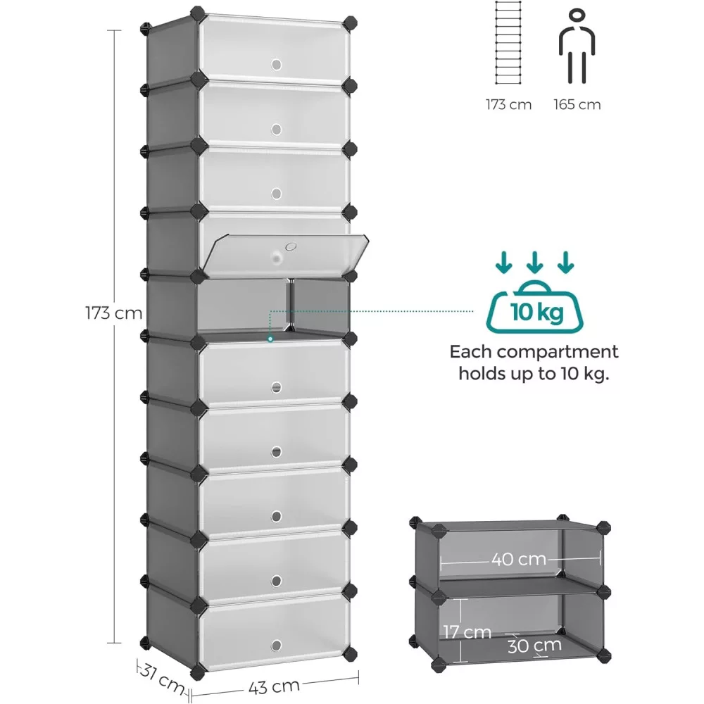 SONGMICS Cipőtároló doboz 10 db moduláris tárolódoboz, szürke 43x31x173cm