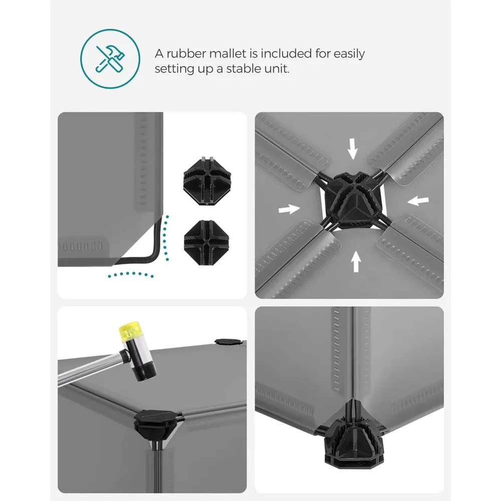 Könnyebb, Mint Gondolnád: A mellékelt kalapáccsal és illusztrált útmutatóval az összeszerelés örömteli—szinte olyan, mintha építőkockákkal játszanál! Költözés? Ez a könnyen szétszerelhető egység megkönnyíti az áthelyezést!