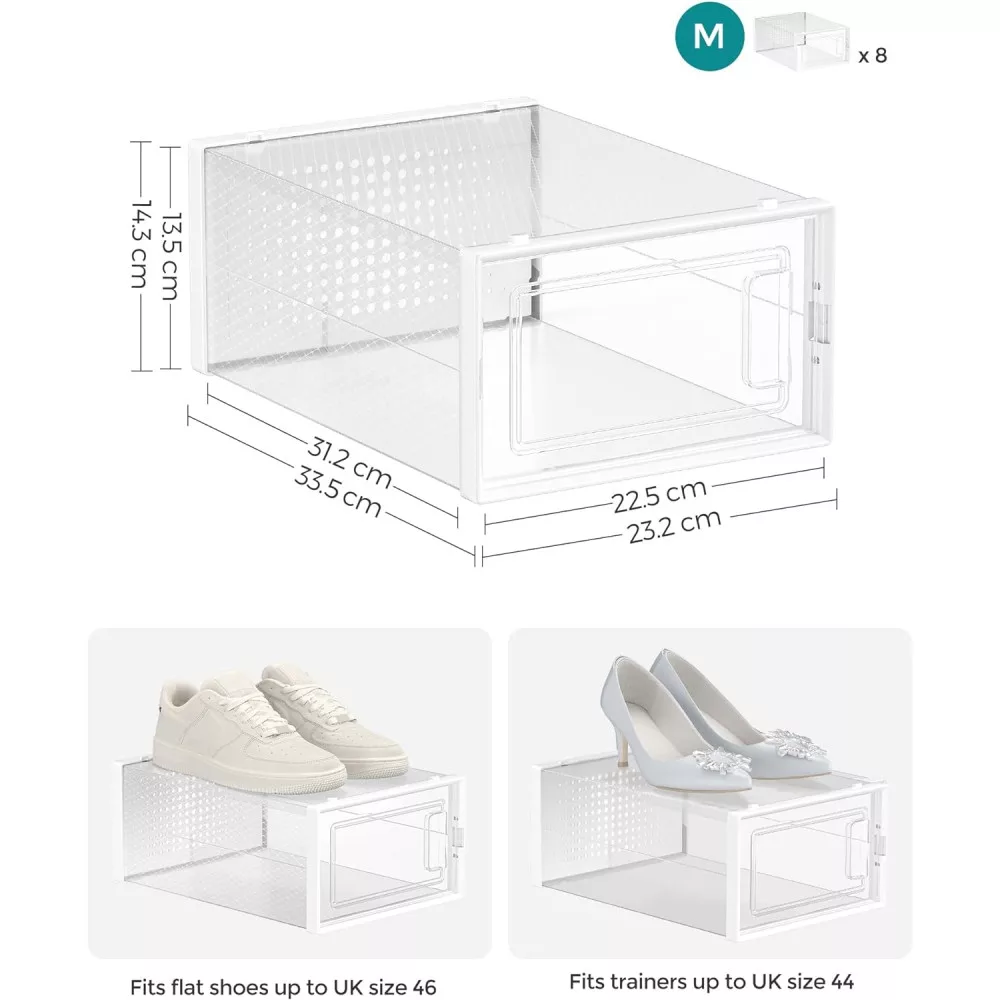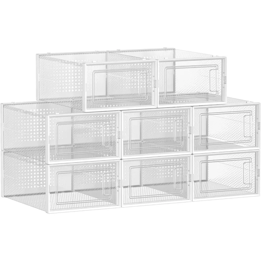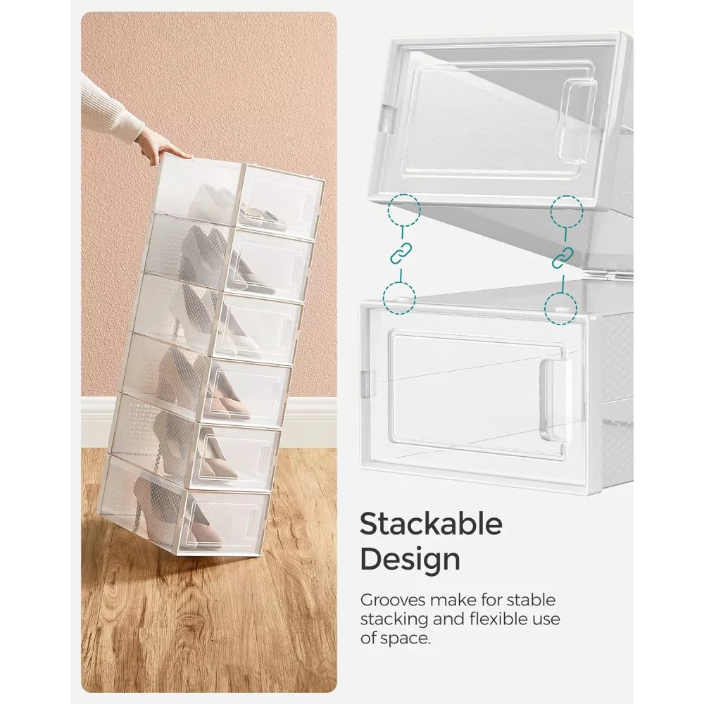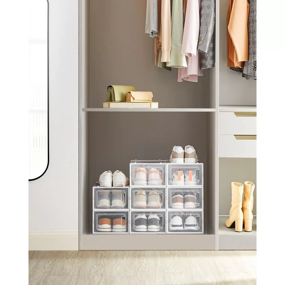 SONGMICS Cipődobozok, 8 darabos rakható cipőtároló szervezők, összehajtható és sokoldalú,