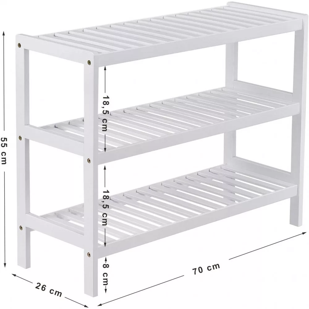 Cipőtároló polc 3 szintes, fehér 70x26x55cm