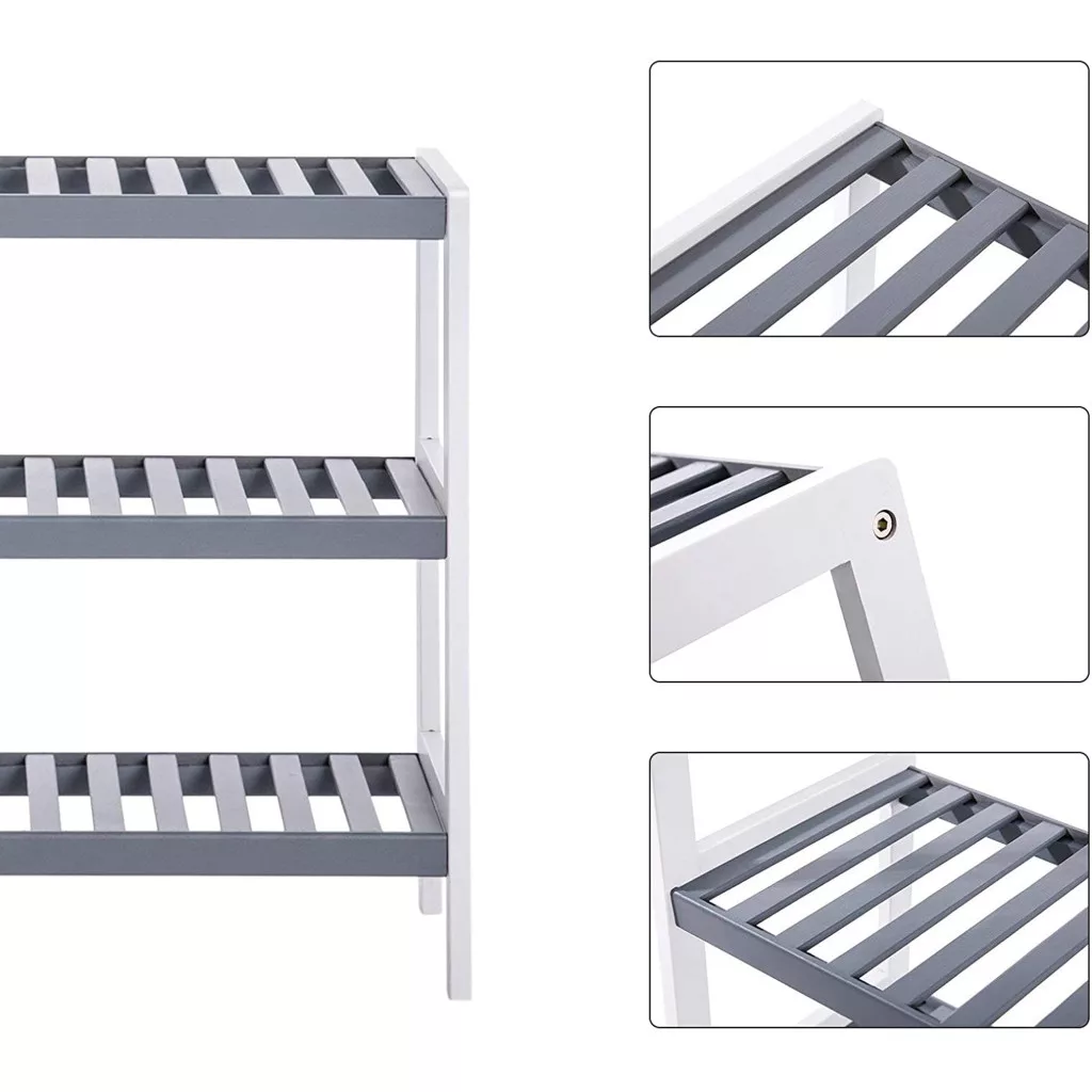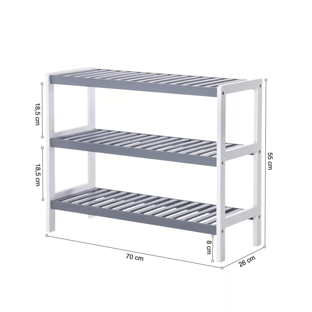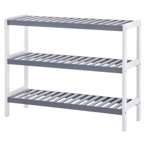 Cipőtároló polc 3 szintes, fehér és szürke 70x26x55cm