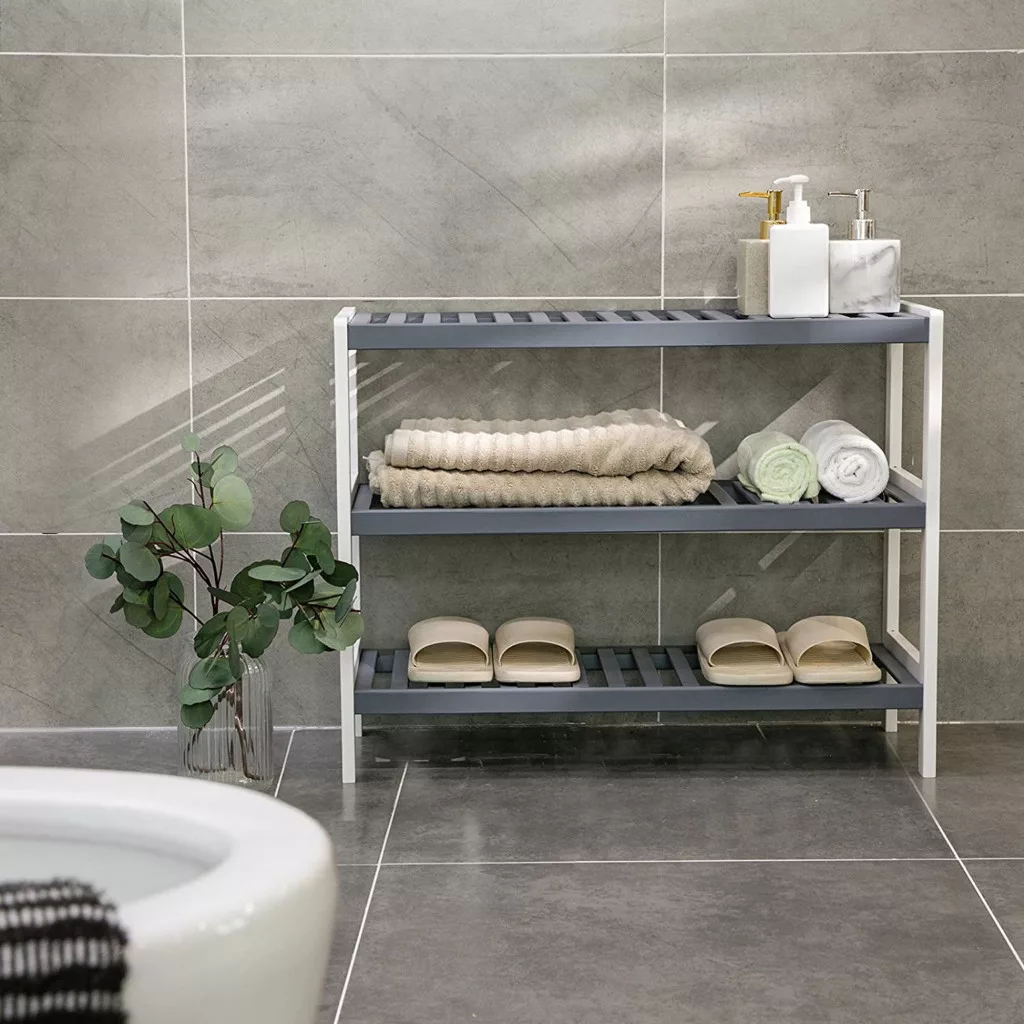 SONGMICS Cipőtároló polc 3 szintes, fehér és szürke 70x26x55cm