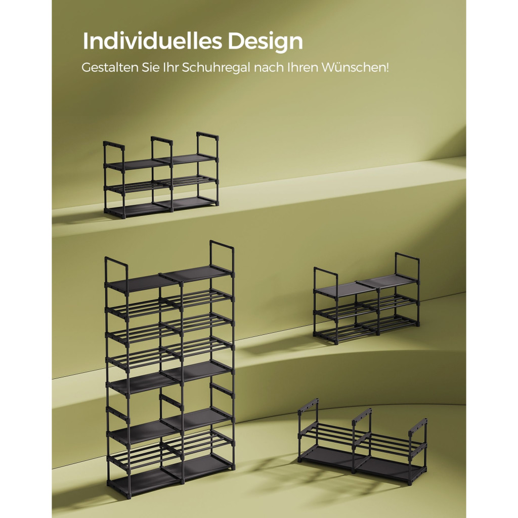 Alkalmazkodó kialakítás: Állítsa be a cipőtartó elrendezését az elemek magasságához igazítva. Két vagy több állványra is osztható. Személyre szabhatja, hogy megfeleljen az egyéni igényeinek, legyen az egy ruhásszekrényben, garázsban vagy tárolóhelyiségben!