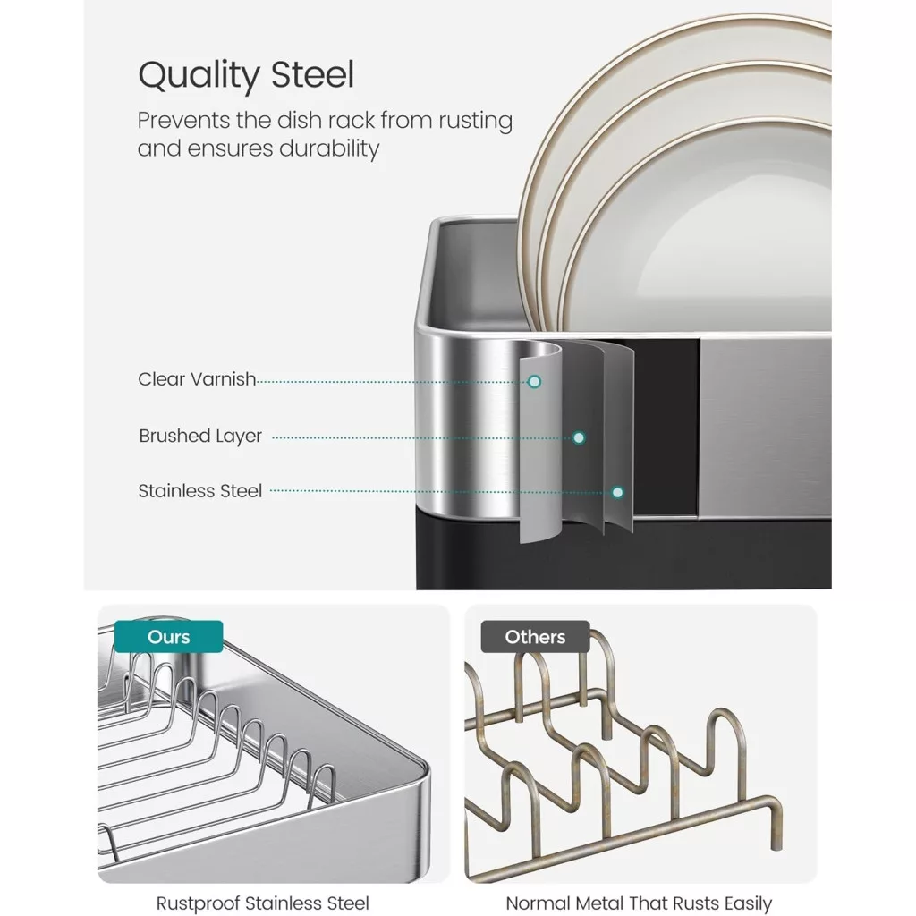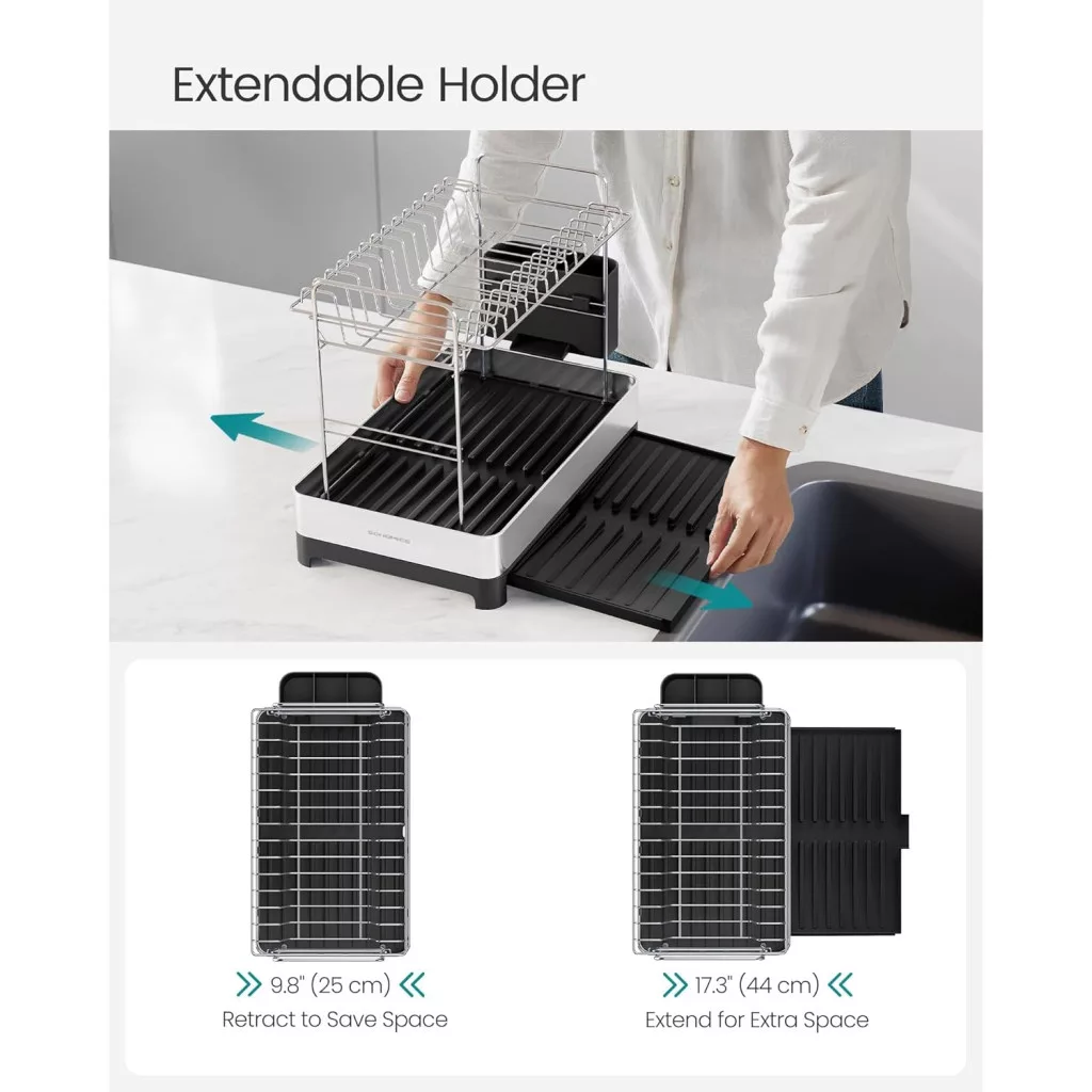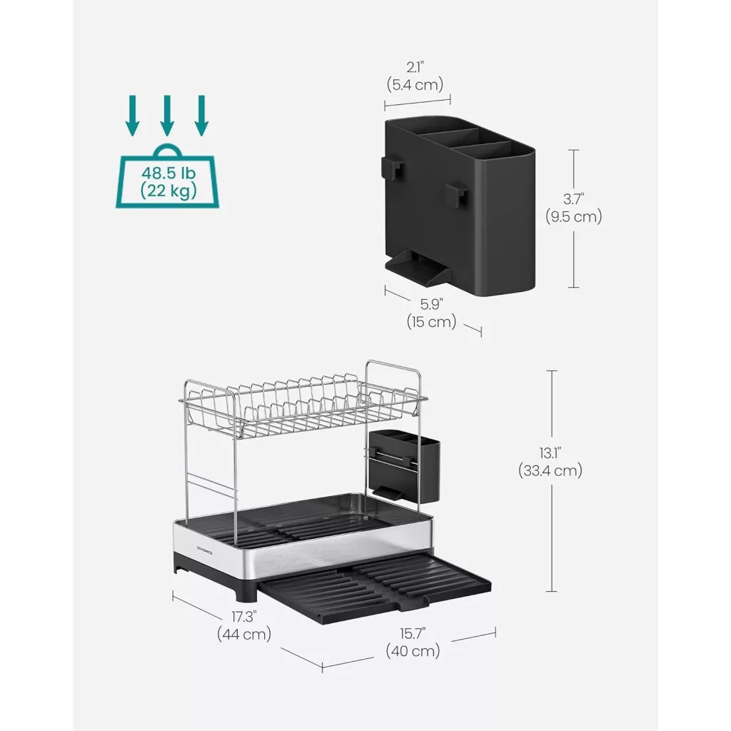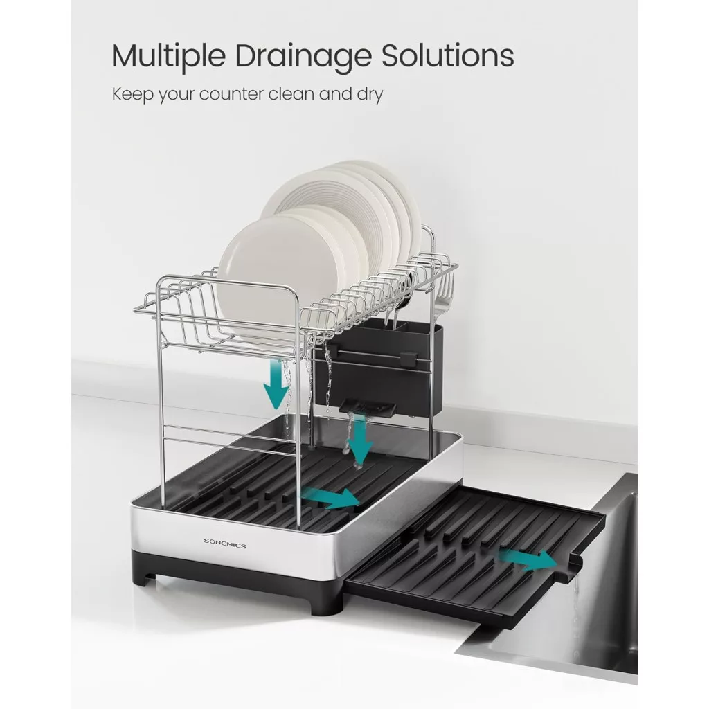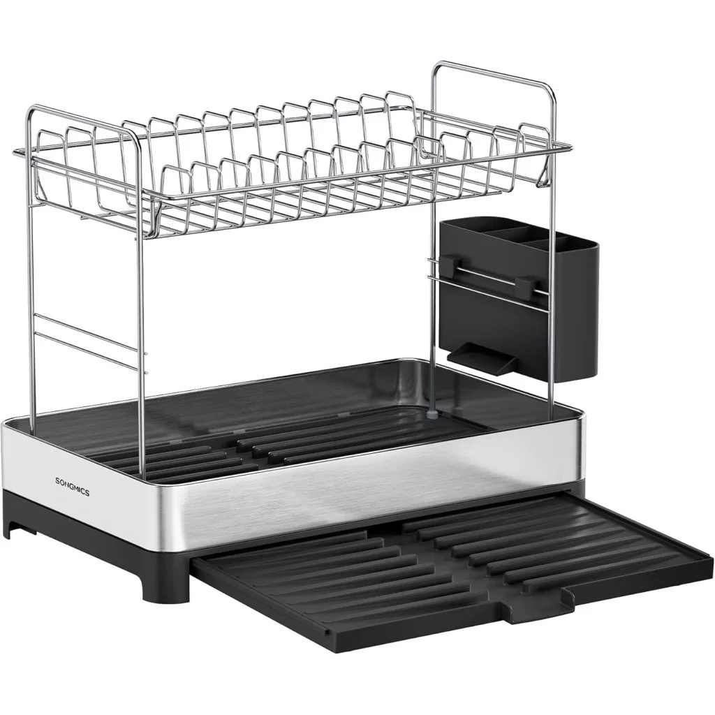 SONGMICS SONGMICS 2 szintes edényszárító állvány, bővíthető edényszárító, rozsdamentes acél konyhai edényszárító evőeszköztartóval, rozsdamentes, tányérokhoz, késekhez, kanalakhoz, villákhoz, ezüst és fekete KCS036B01