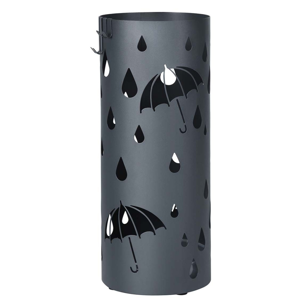 Esős és napos napokra: Eredeti, esőmotívumokkal díszített nyitott kialakításával ez a tartó tudja, hogyan emelje ki esernyőit. Matt antracit szürke felületével modernséget és eleganciát hoz belső terébe, még napos napokon is.