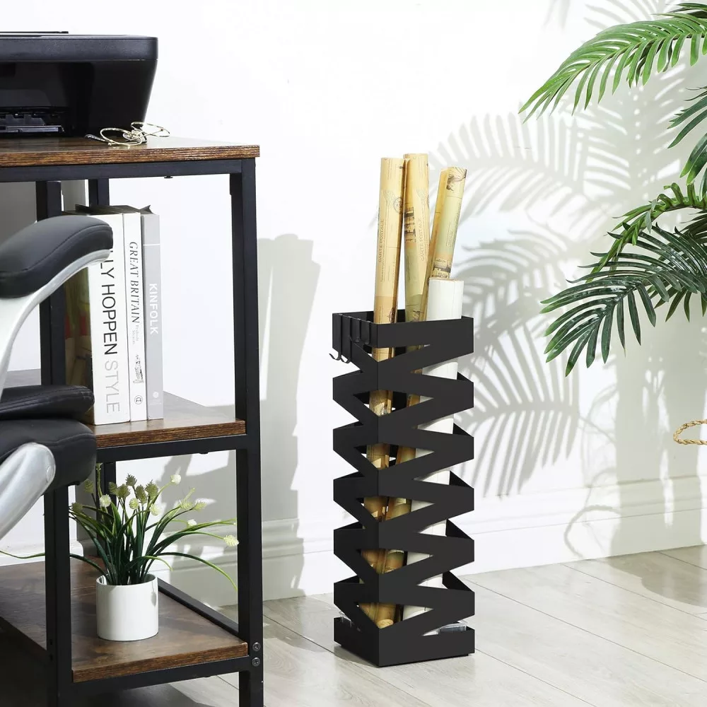 SONGMICS Fém esernyőtartó, négyzet alakú esernyőtartó állvány, akasztókkal és csepegő