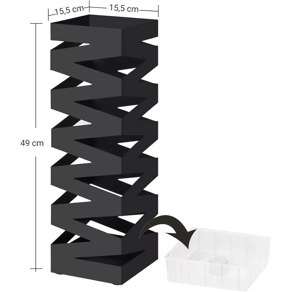 SONGMICS Esernyőtartó négyzet alakú, akasztókkal, fekete 15x15x49cm