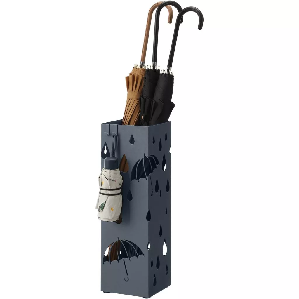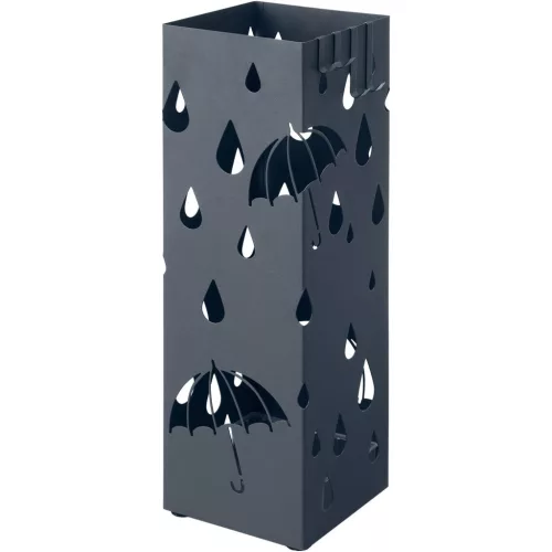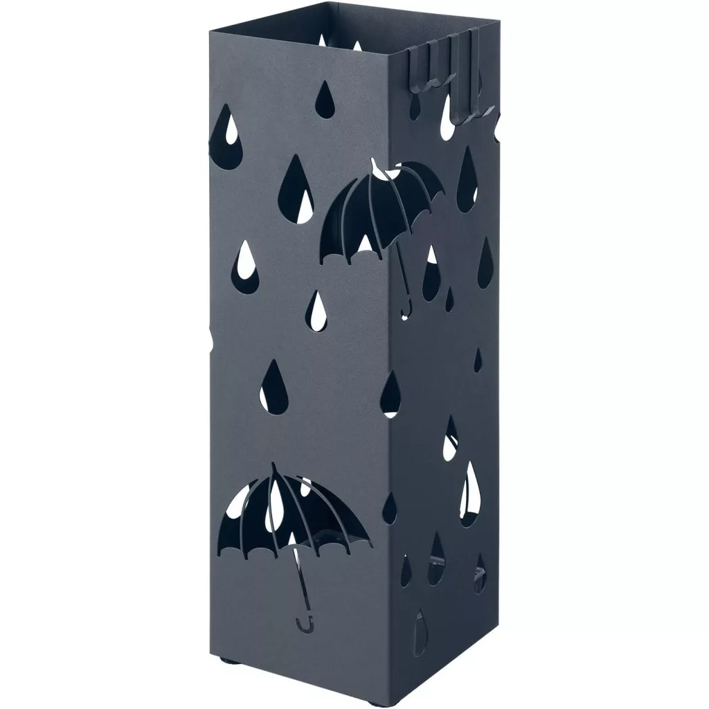 Esernyőtartó négyzet alakú, esernyő mintás, akasztókkal, szürke 15x15x49cm