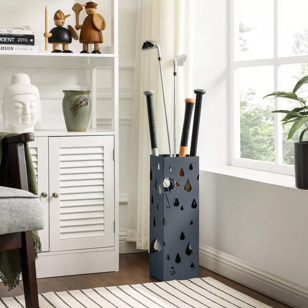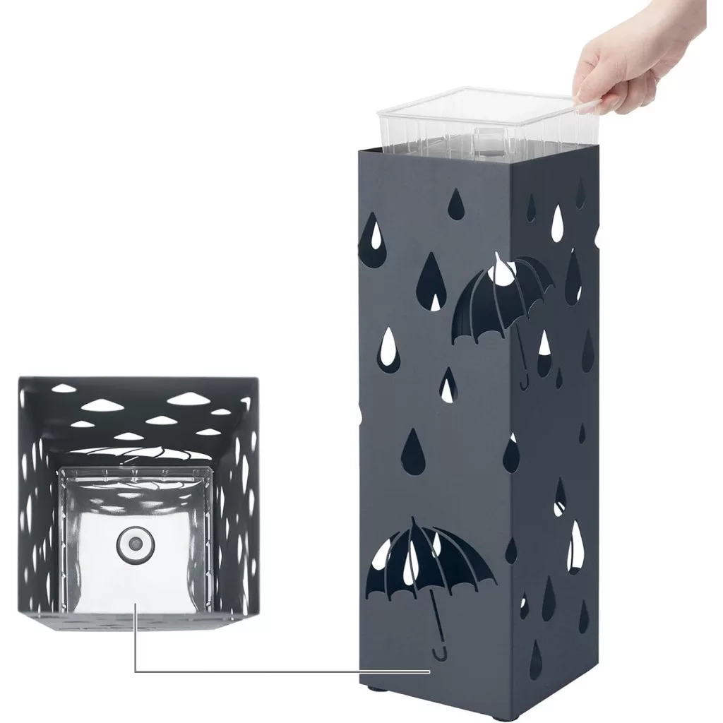 SONGMICS Fém Esernyőtartó, Négyszögletes Esernyőállvány Csepegtetőtálcával és
