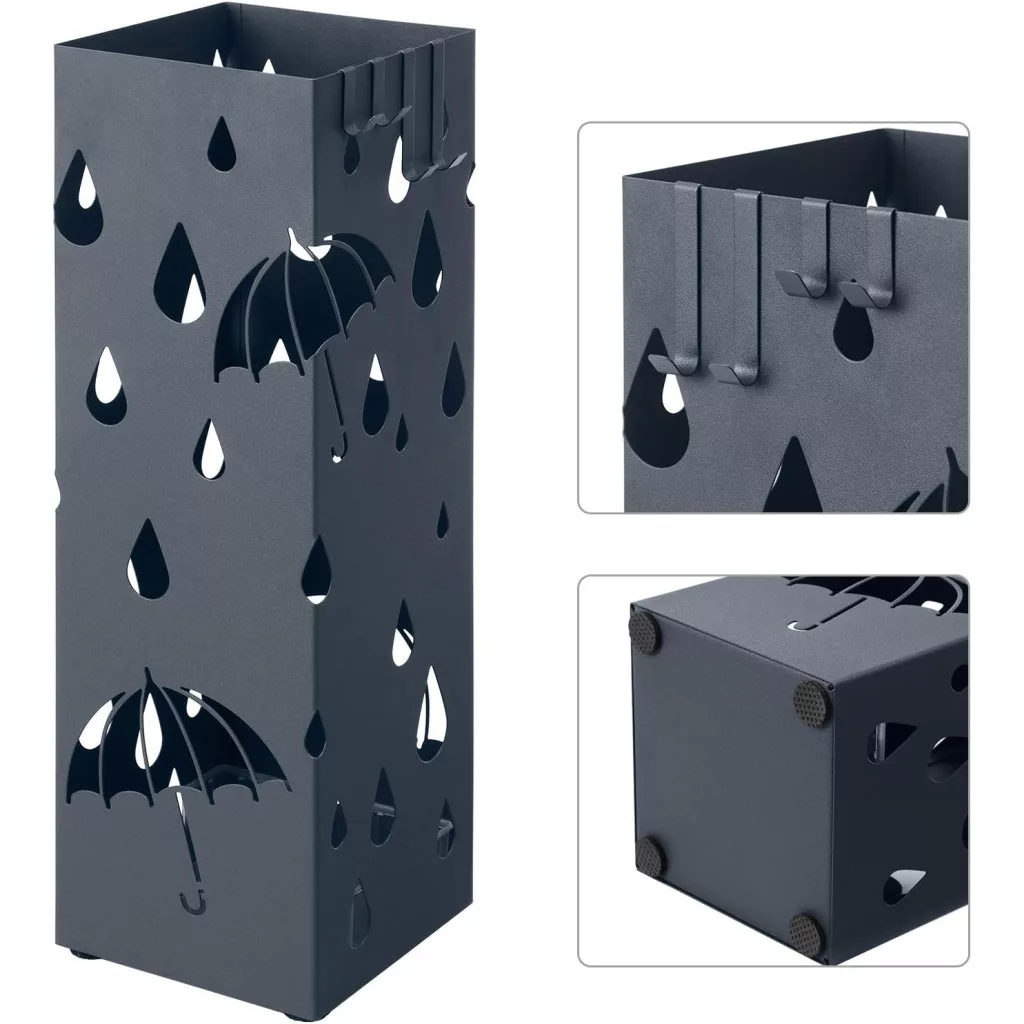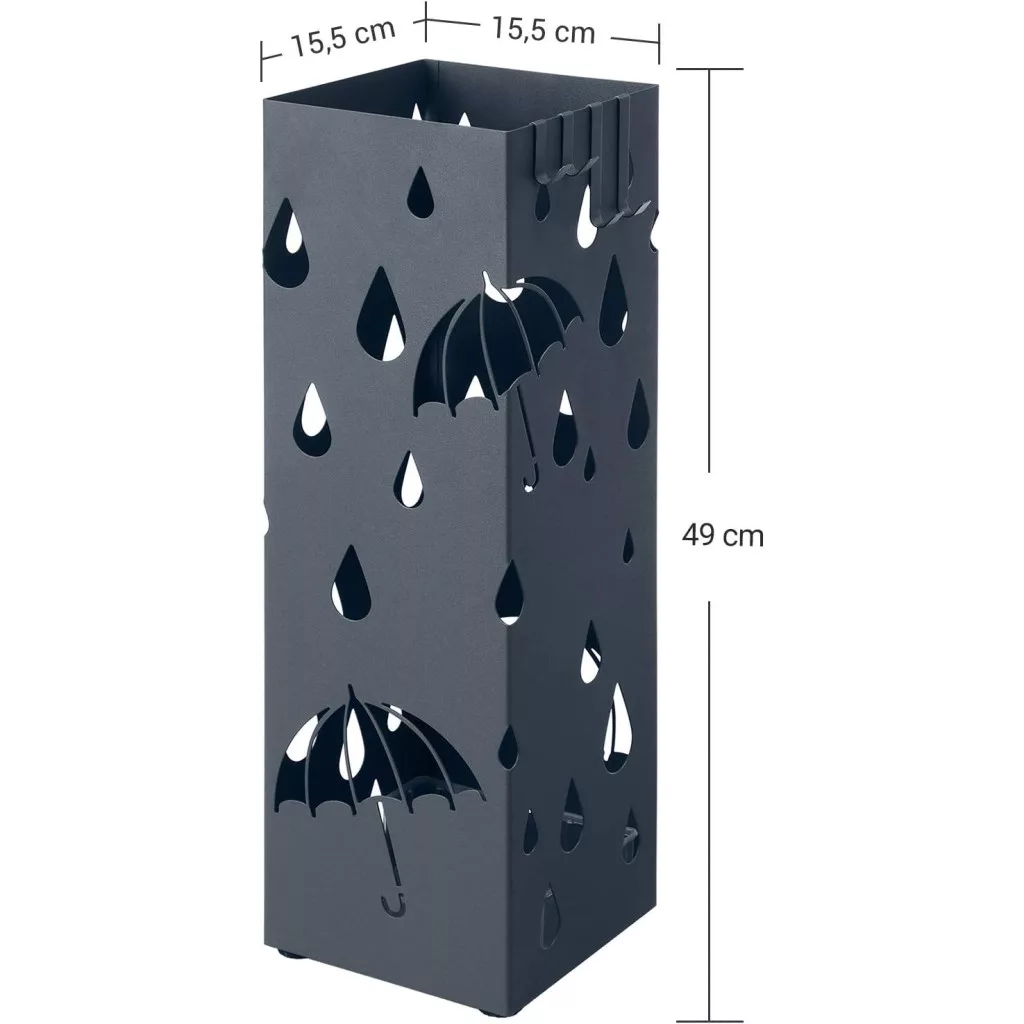 SONGMICS Esernyőtartó négyzet alakú, esernyő mintás, akasztókkal, szürke 15x15x49cm