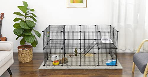 SONGMICS Fém ketrec háziállatoknak tengerimalac, hörcsög, nyúl számára 36 paneles, fekete 143x73x71cm