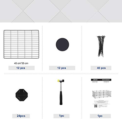 Amit kapsz: 12 rácslap, 24 műanyag csatlakozó, 12 csúszásgátló párna, 1 gumikalapács, 40 kábelkötöző—minden elem, amire szükséged van egy kisállat paradicsom megépítéséhez!