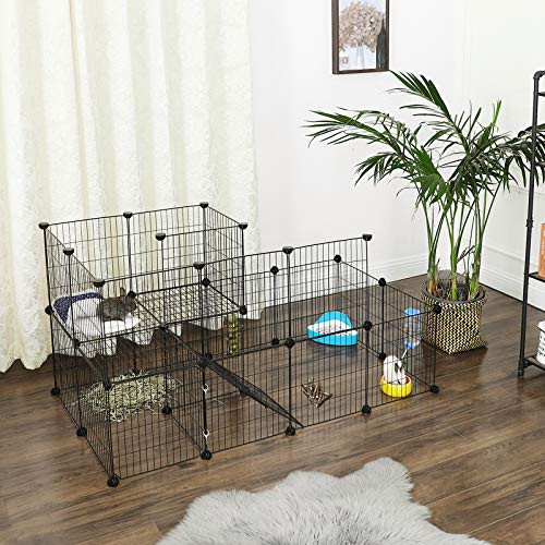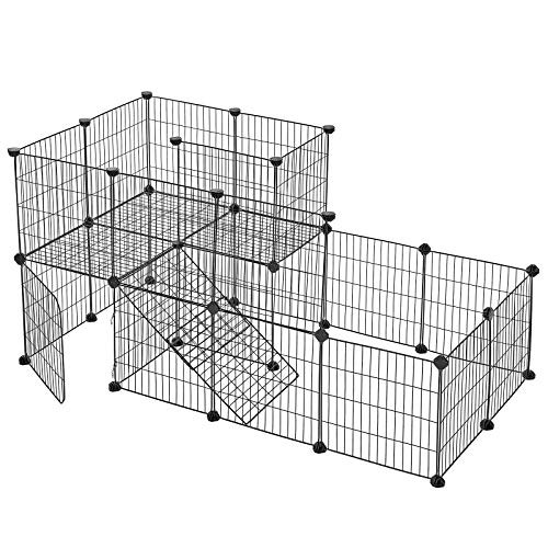 SONGMICS Fém ketrec háziállatoknak tengerimalac, hörcsög, nyúl számára, fekete 143x73x71cm