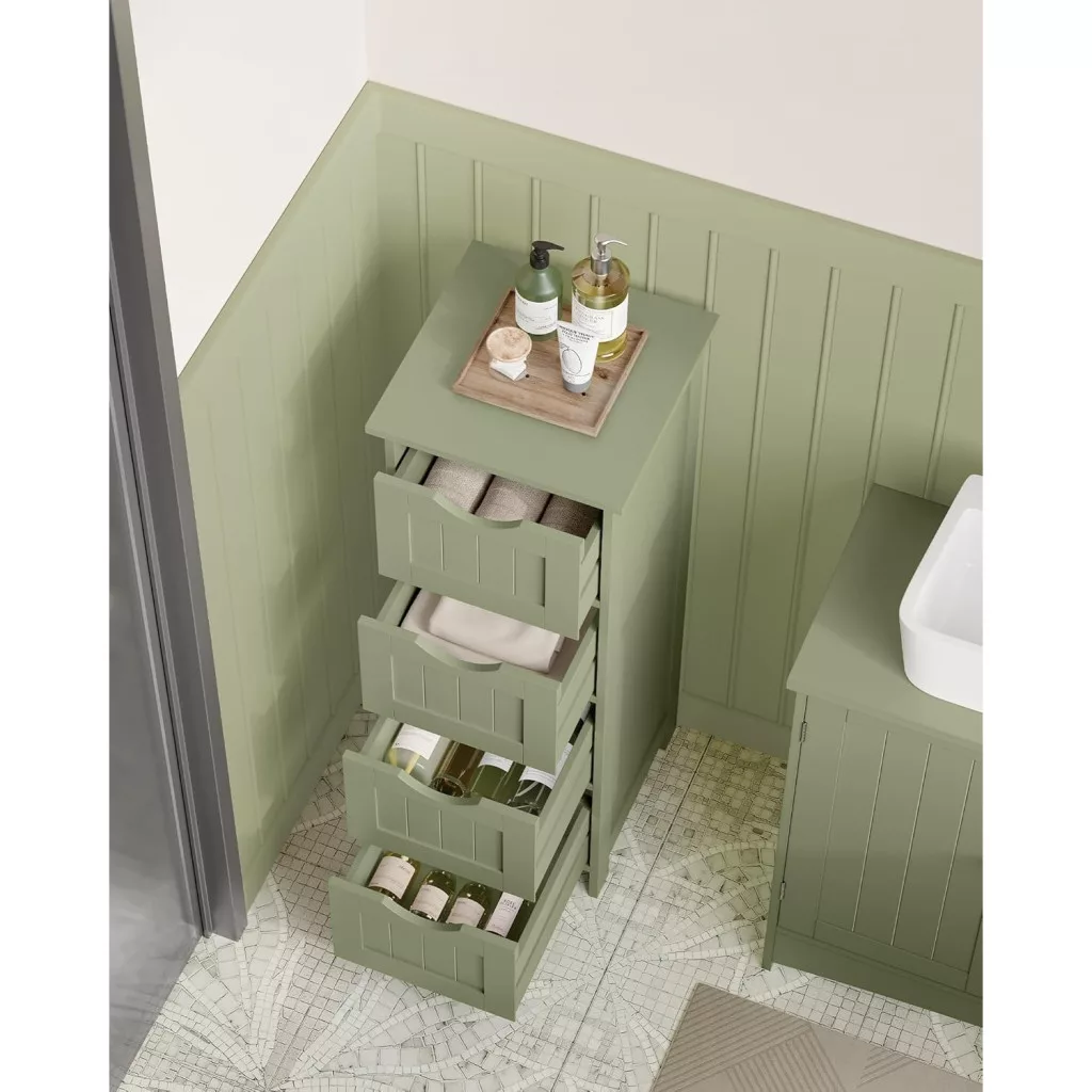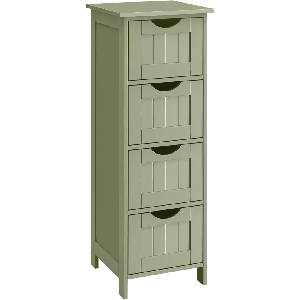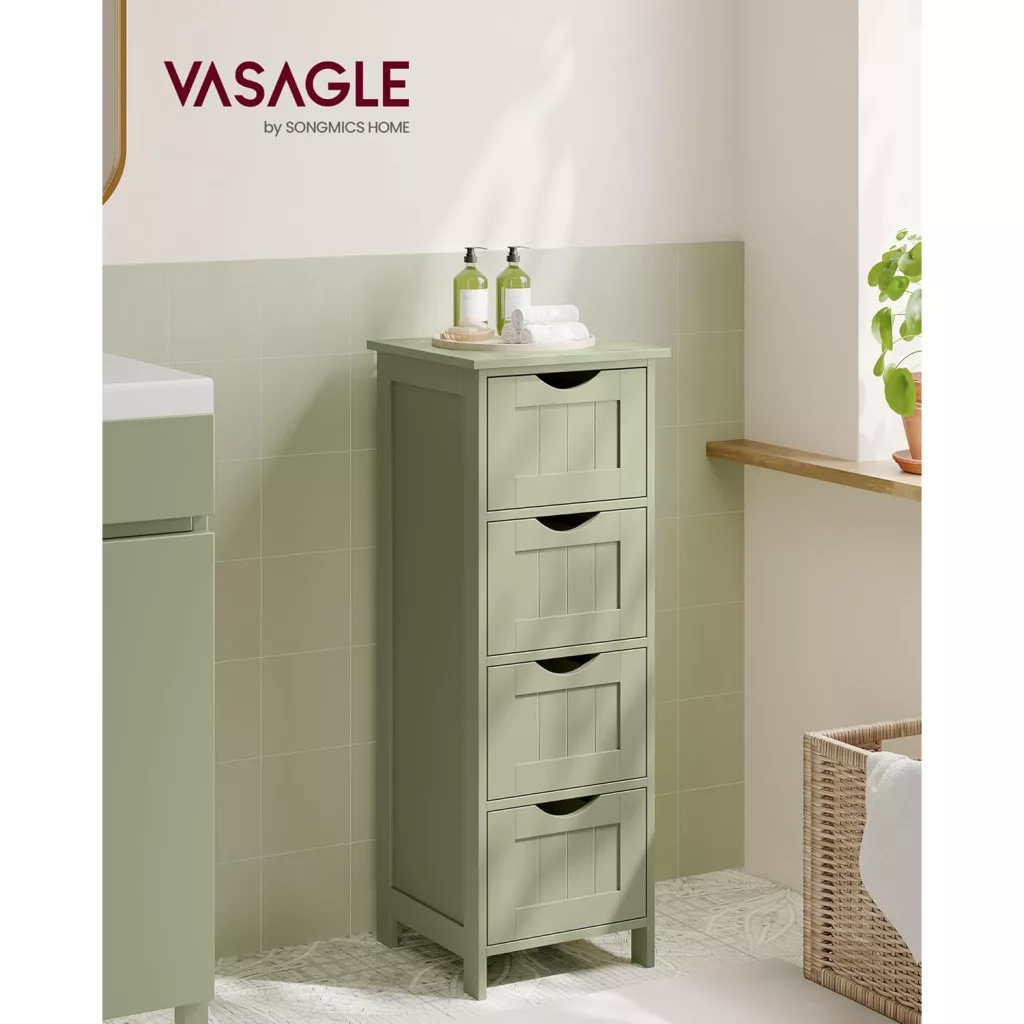 SONGMICS VASAGLE fürdőszobaszekrény, fürdőszobai szekrény, oldalszekrény 4 fiókkal, 30 x 30 x 82 cm, fürdőszobába, nappaliba, étkezőbe, konyhába, modern, babérzöld LHC040C02