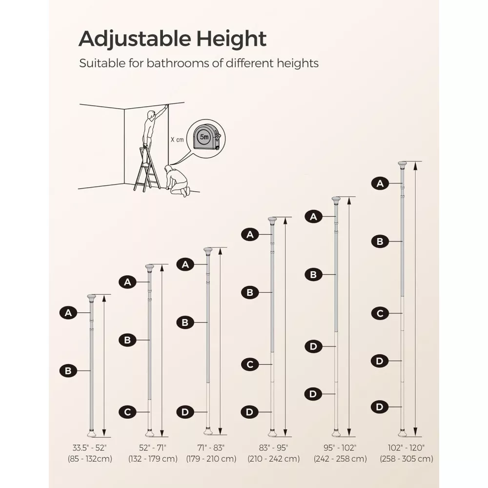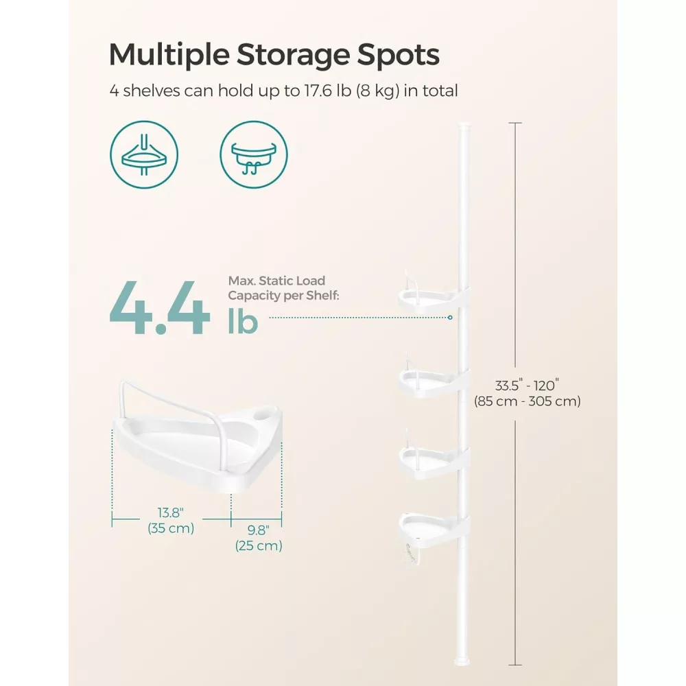 SONGMICS Állítható Fürdőszobai Sarokpolc, Teleszkópos Zuhanykosár, 85-305 cm, Padlótól