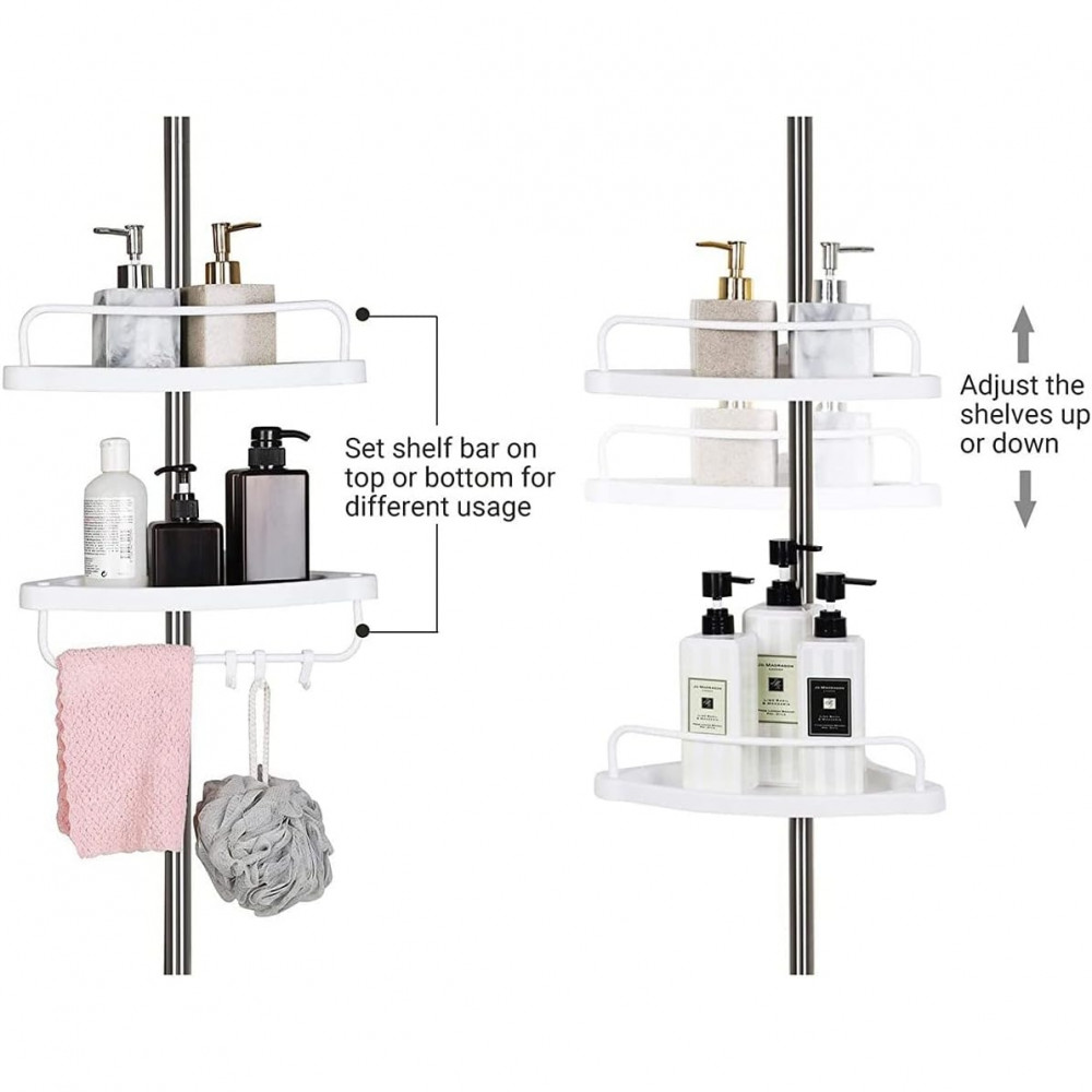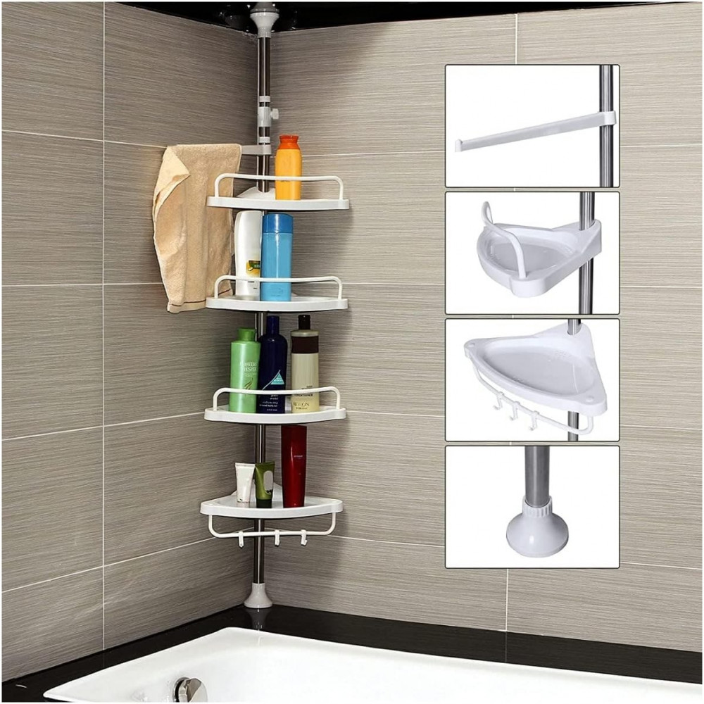 SONGMICS Állítható Fürdőszobai Sarokpolc, Teleszkópos Zuhanykosár, 95-300 cm, Padlótól