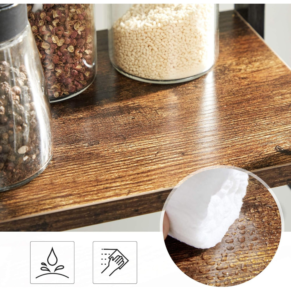 Ízekkel Teli: Cukor az édeshez, ecet a savanyúhoz, só a sós ízekhez...várj, van még egy. A gazdag faerezetű és fekete keretes 2 polccal ez a pultpolc maga is bájos, rusztikus ízt sugároz.