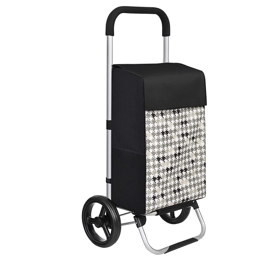 Gurulós bevásárlókocsi, 40L, levehető hátizsákkal, pepita mintás és fekete